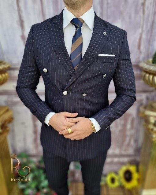 - Culoare: bleumarin cu dungi maro