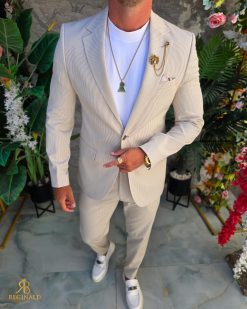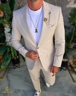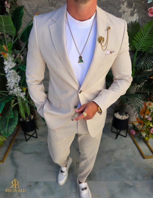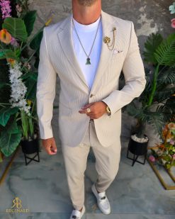 - Culoarea: Crem cu dungi albe