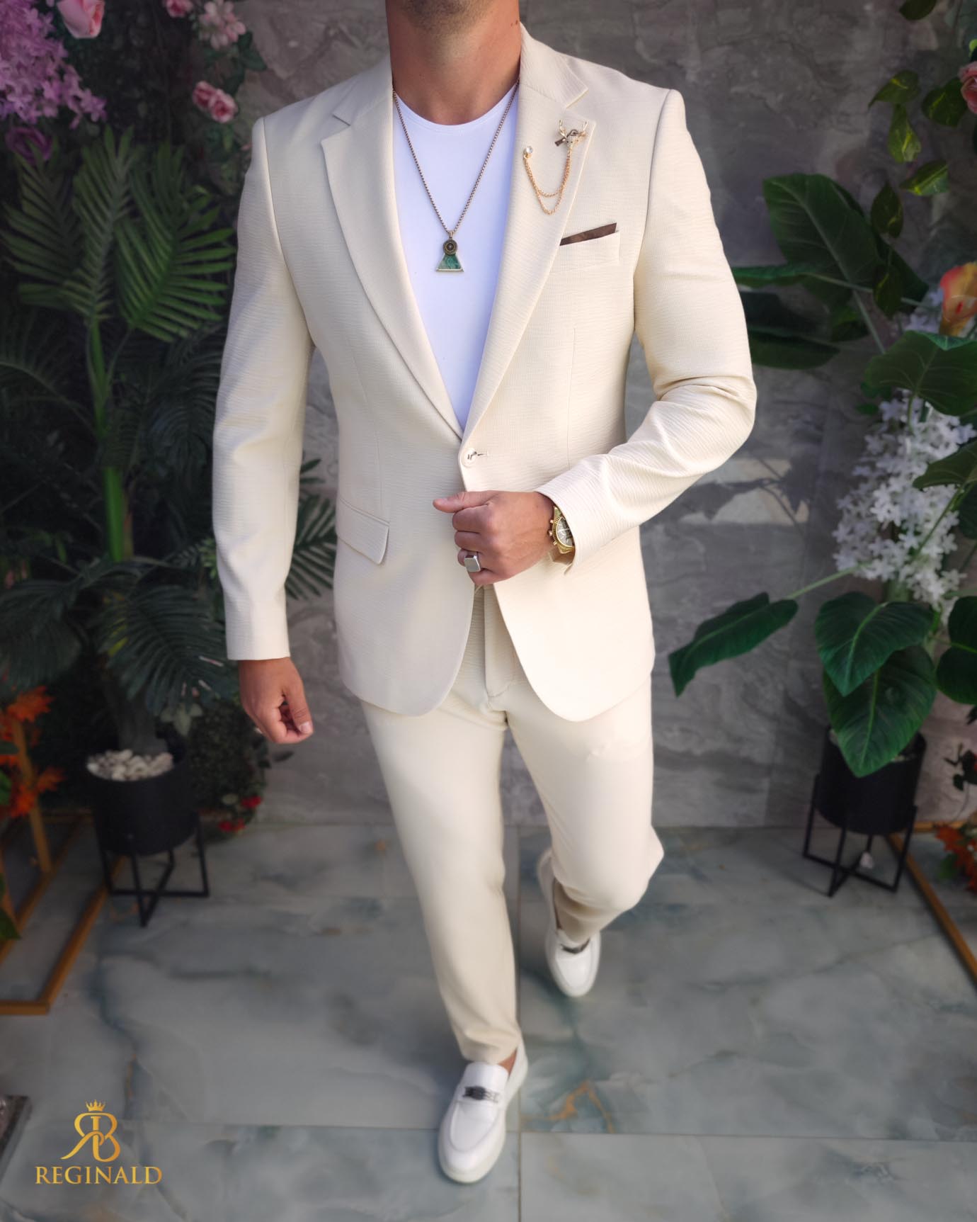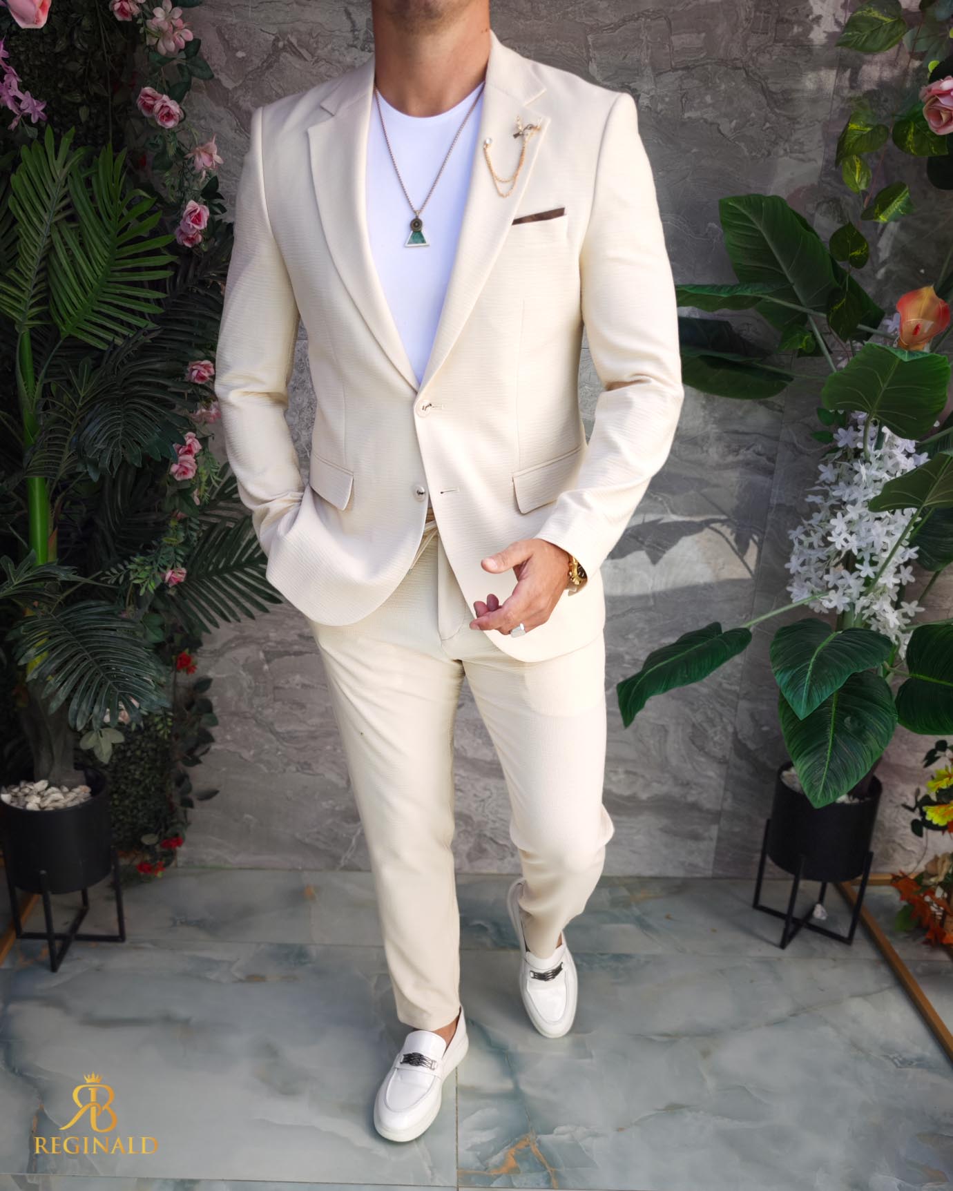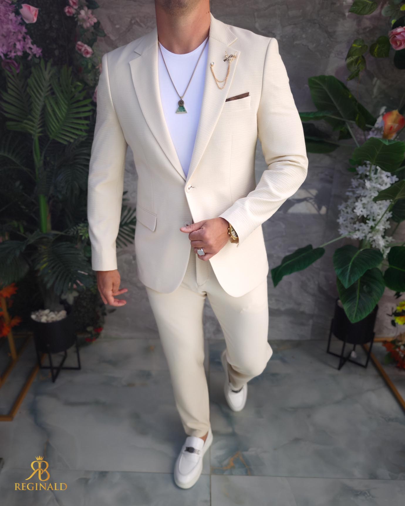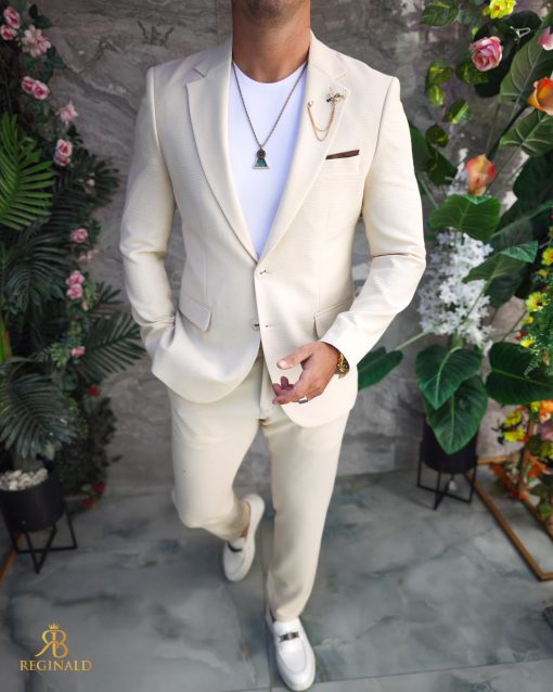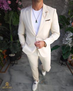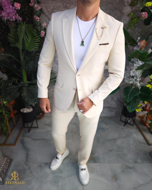 Costum de barbati Crem: Sacou si Pantalon – C5189
