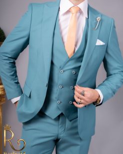 Costum barbatesc croiala slim-fit Reginald 2021, set 3 piese: Sacou, Vesta si pantalon