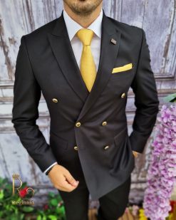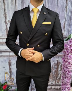 Costum de barbati elegant negru cu butoni aurii Sacou si Pantalon – C2057