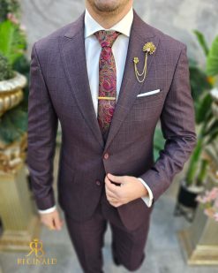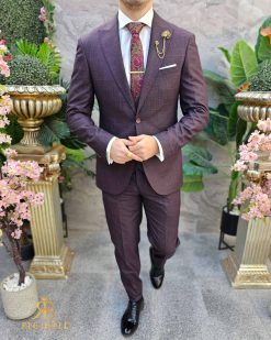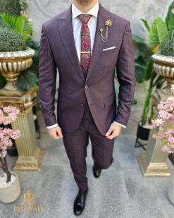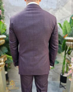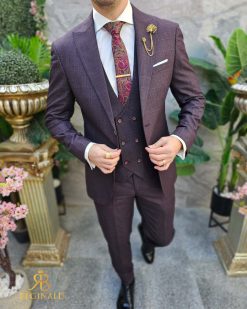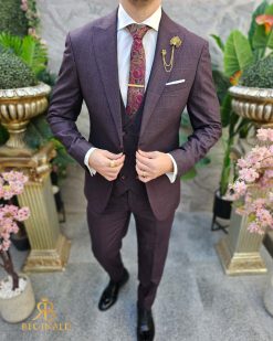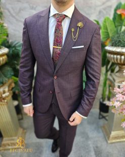 Costum de barbati, grena, Slim-Fit, Sacou, Vesta si Pantalon – C4600