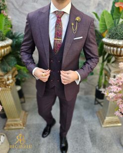 Costum de barbati, grena, Slim-Fit, Sacou, Vesta si Pantalon – C4600