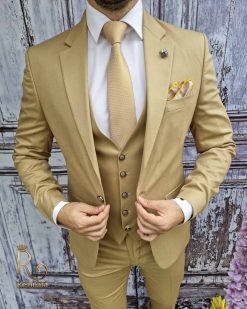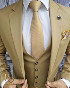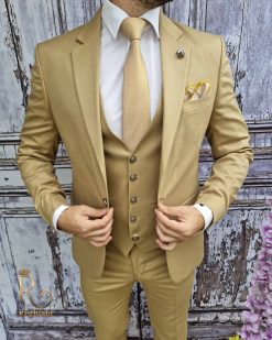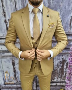 Costum de barbati, Sacou cappucino, Vesta si Pantalon slim-fit- C2023