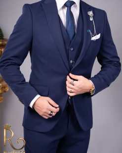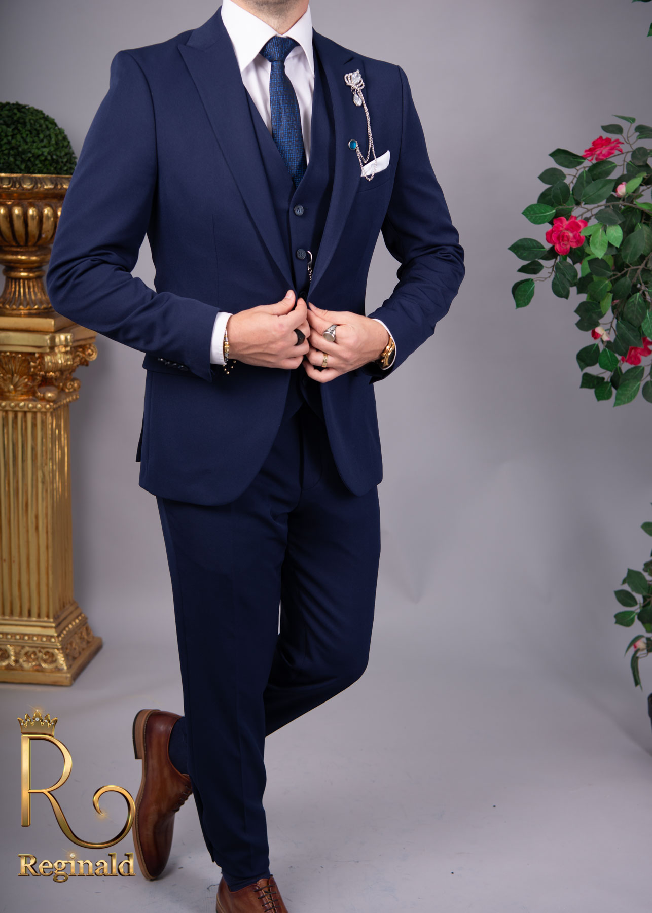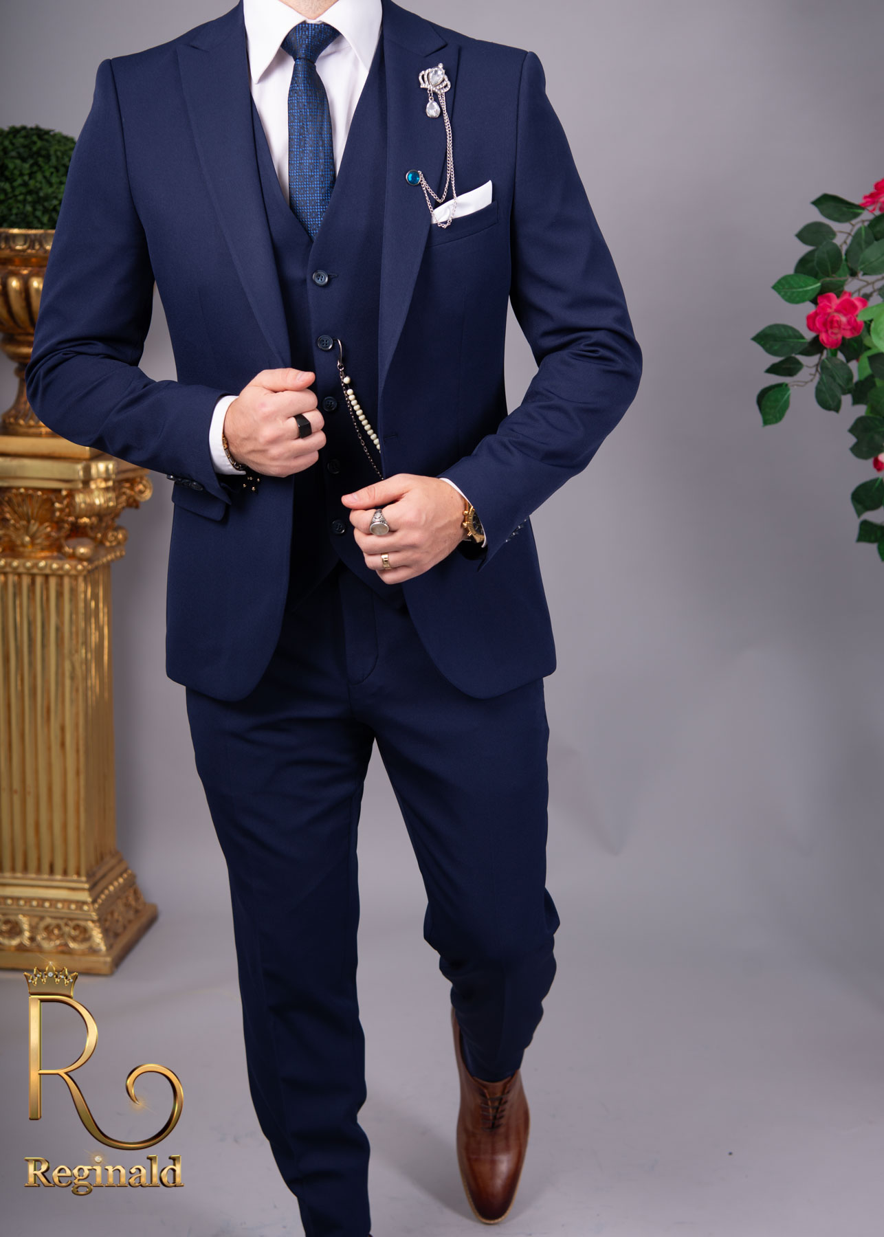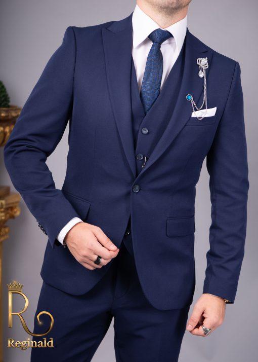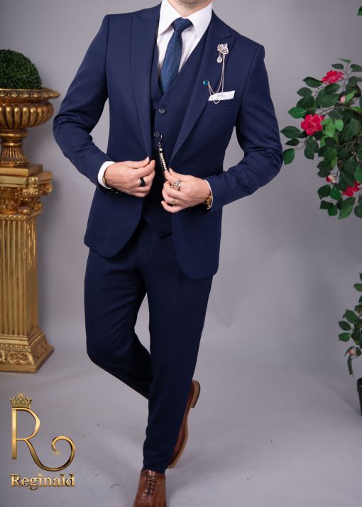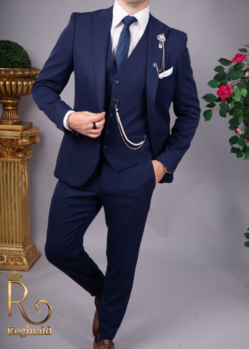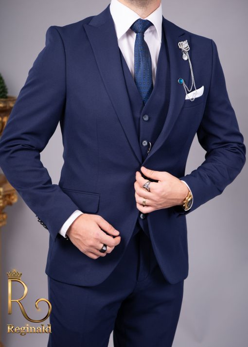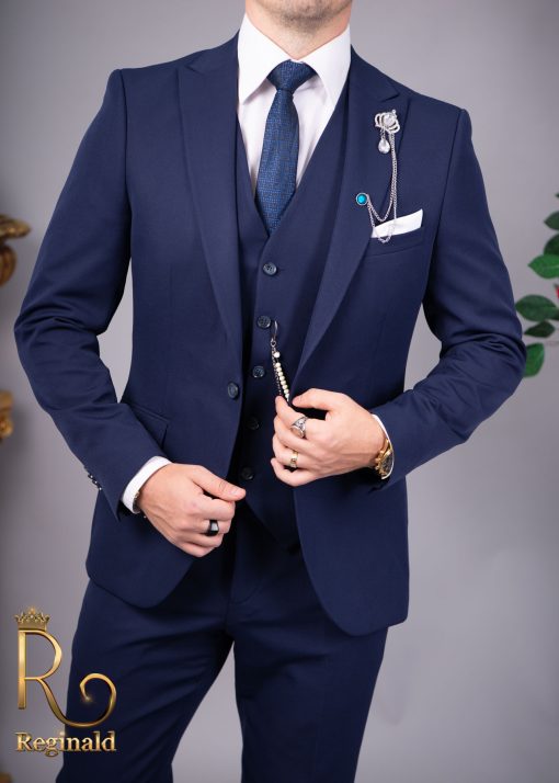 Costum barbatesc croiala slim-fit Reginald 2021, set 3 piese: Sacou, Vesta si pantalon