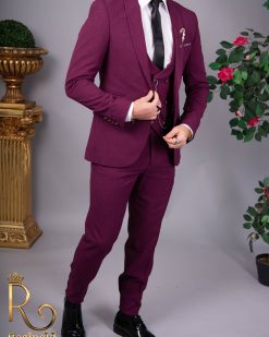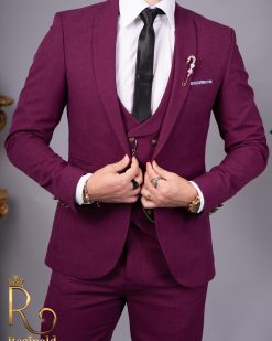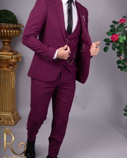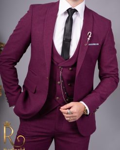 Costum barbatesc croiala slim-fit Reginald 2021, set 3 piese: Sacou, Vesta si pantalon