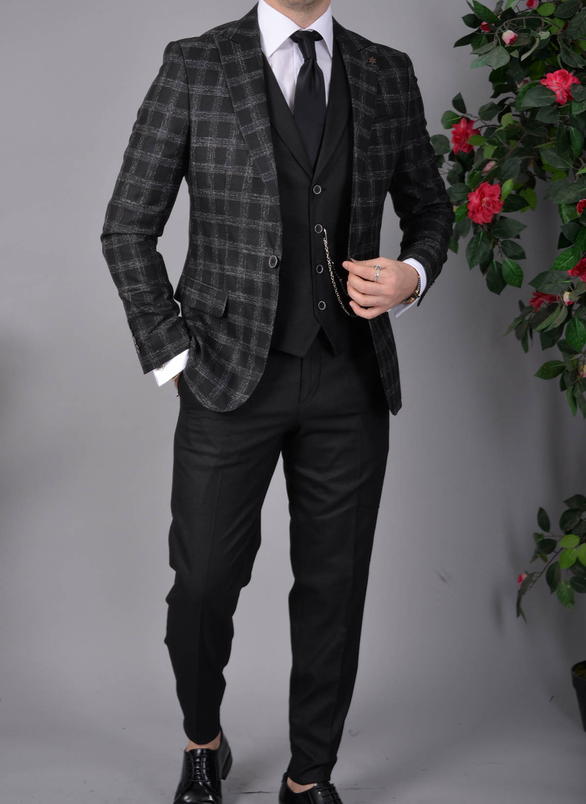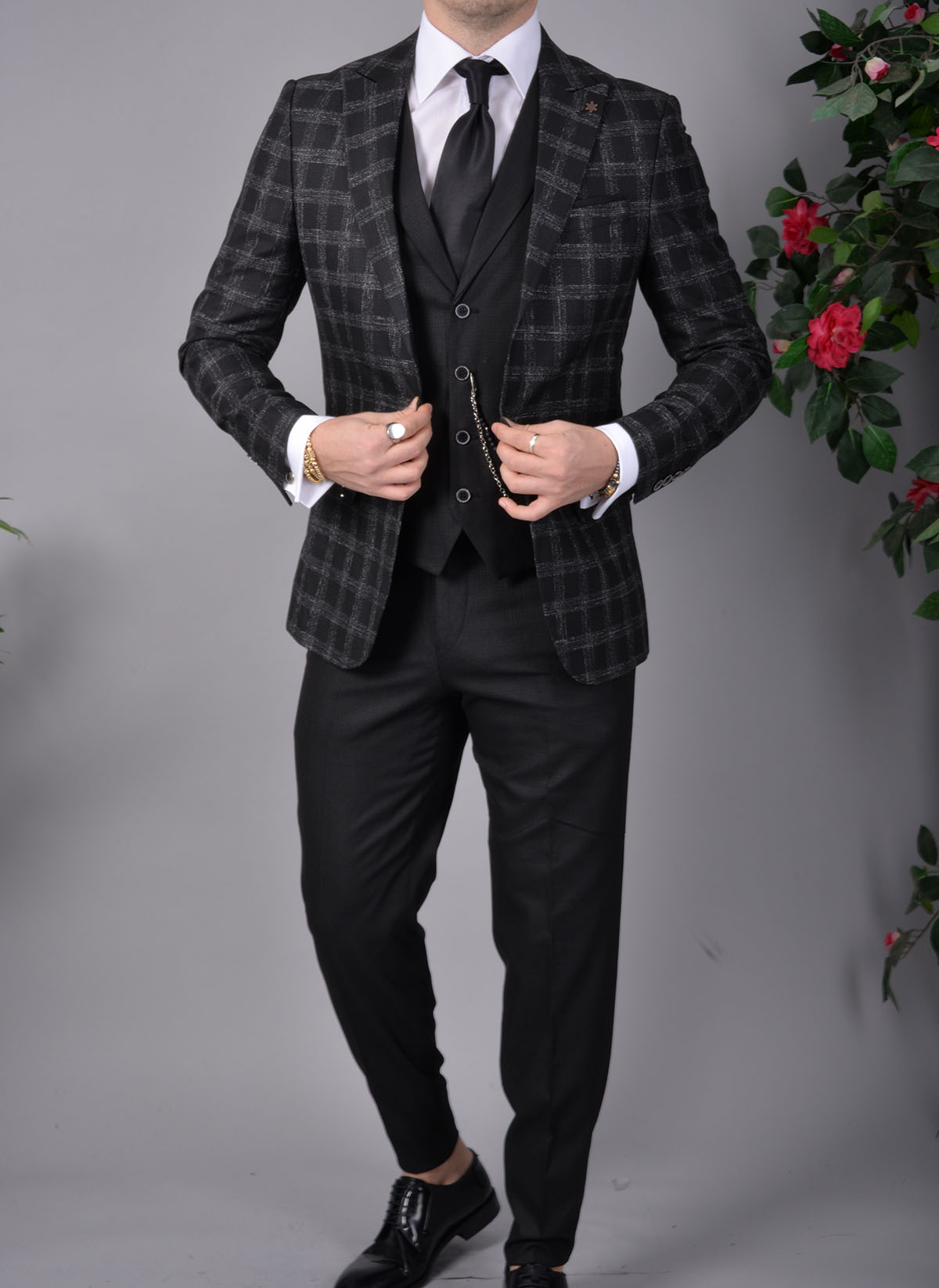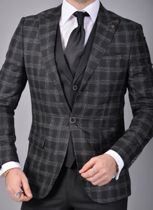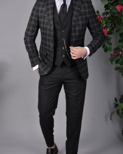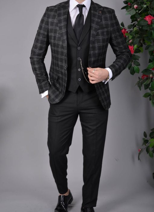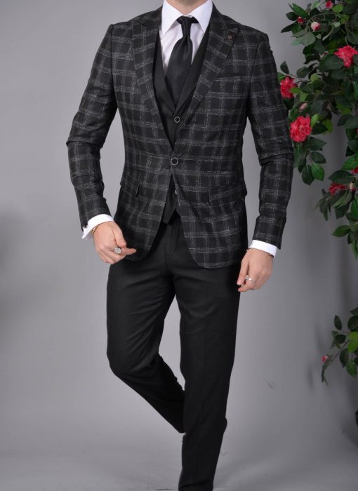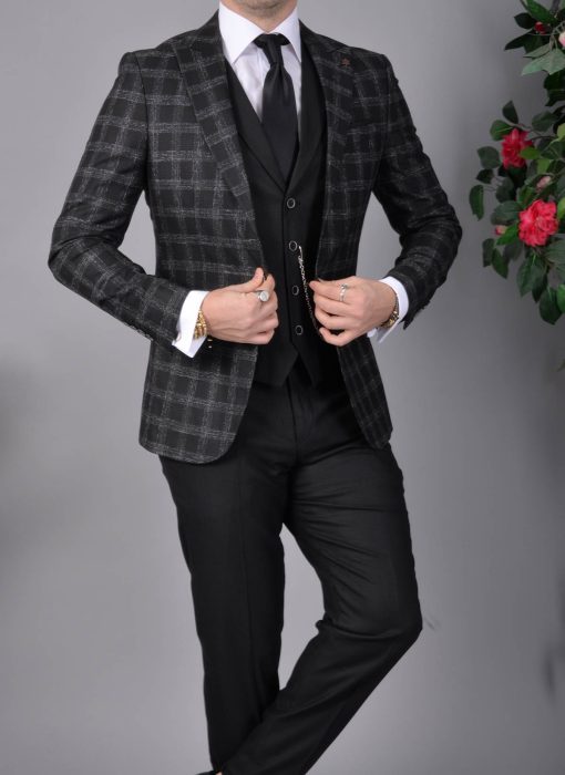 Costum elegant pentru bărbați, cambrat, realizat din 3 piese