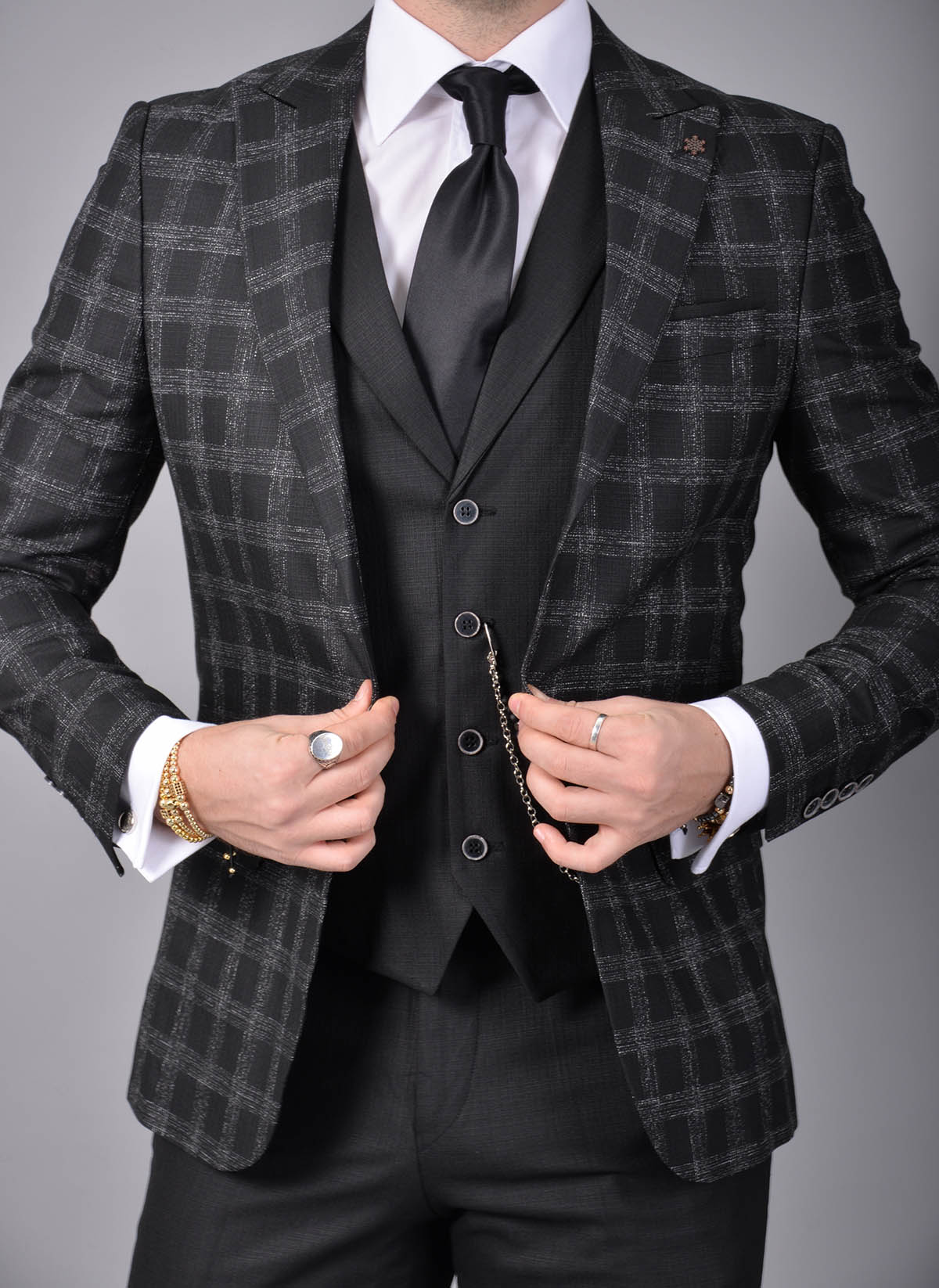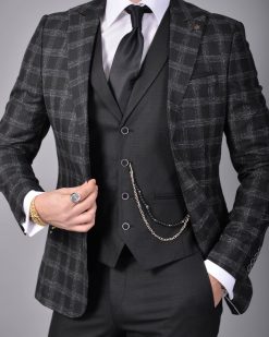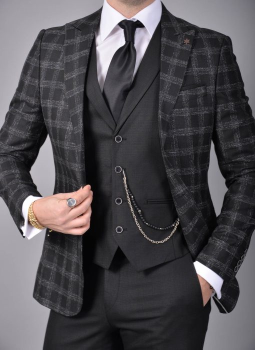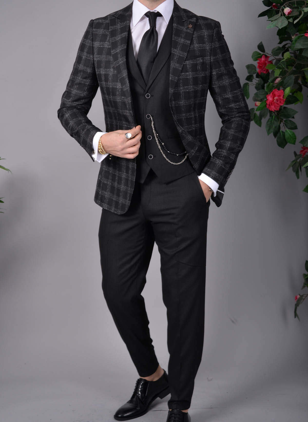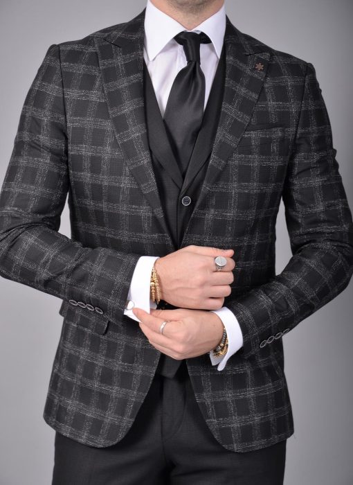 Costum elegant pentru bărbați, cambrat, realizat din 3 piese