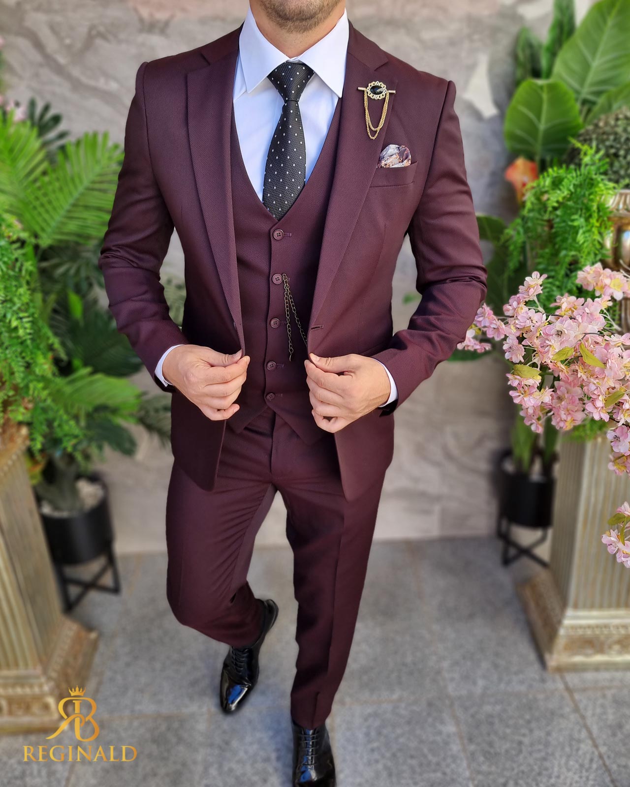 Set Cravata si batista, Bordeaux cu model - CV1060