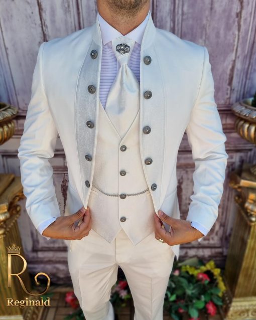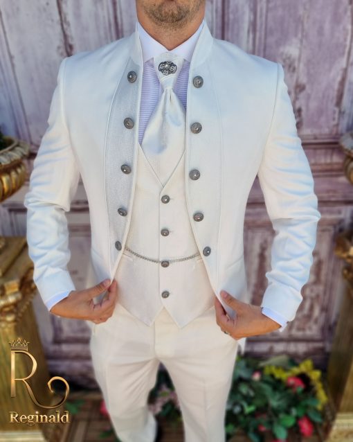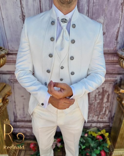 Sacoul este cu tunica, cu nasturi de-a lungul revereului
