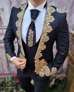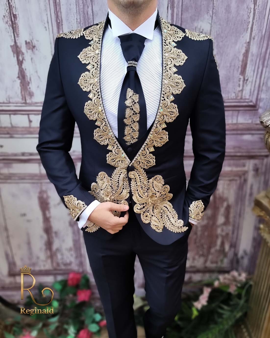 Culoarea: Bleumarin inchis cu broderii aurii aplicate pe sacou