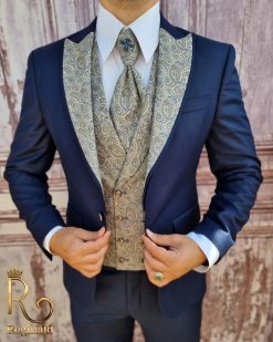 Sacoul este cu rever model auriu, identic cu vesta
