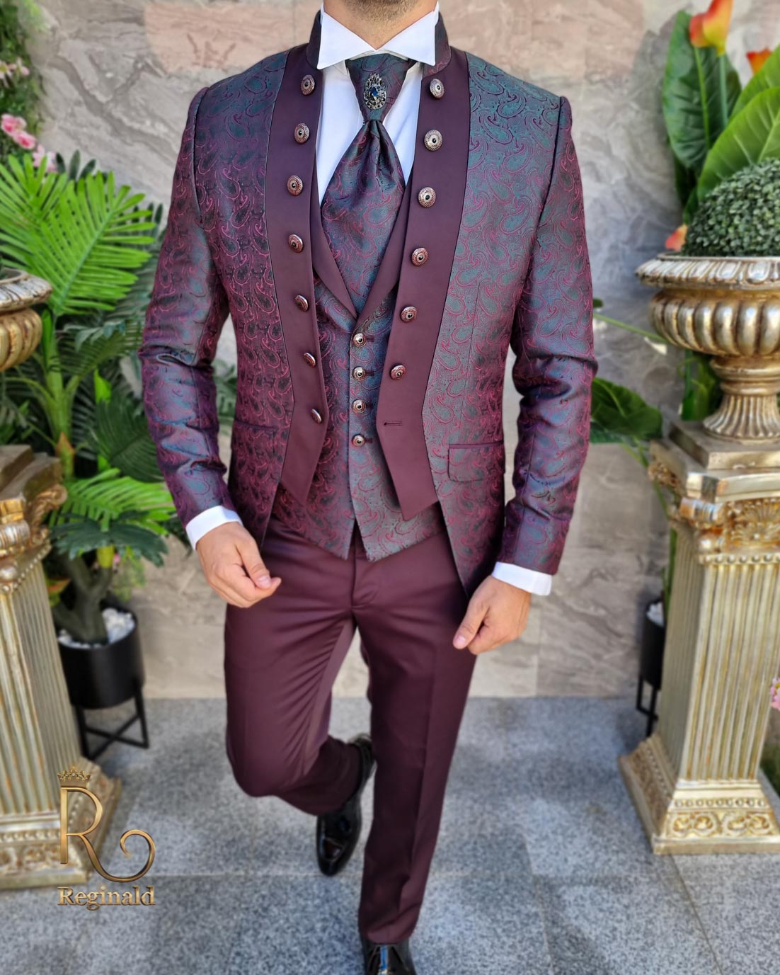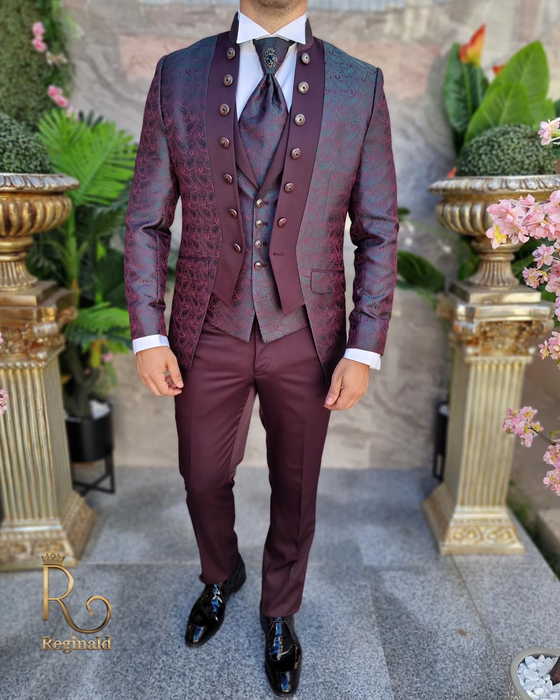 @reginald.ro Costum de ceremonie cu tunica/bordeaux, Sacou, Vesta, Pantalon si Cravata – C3803 Colecția Nunta Reginald Costum ceremonie , Sacou-Vesta-Pantalon-Cravata Sacou slim fit: Sacoul este cu tunica Prindere: nasturi Culoarea verde cu rever visiniu Croiala : Slim-Fit Drop: 6 Pliuri la spate: 1 Vesta Prindere cu nasturi Curea ajustabila la spate, căptușeala la spate Pantalon elegant slim: Buzunare : 2 in fata / 2 in spate – închidere cu nasture #outdoorwedding #indianwedding #weddingtiktok #weddingguest #weddingoutfit #groomsmen #weddingguestoutfit #weddingfashion ♬ sunet original – ʀᴇɢɪɴᴀʟᴅ.ʀᴏ