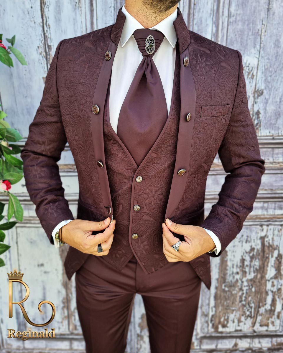 Sacou-Vesta-Pantalon-Cravata Costum barbatesc, de ceremonie croiala slim-fit Reginald