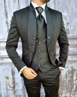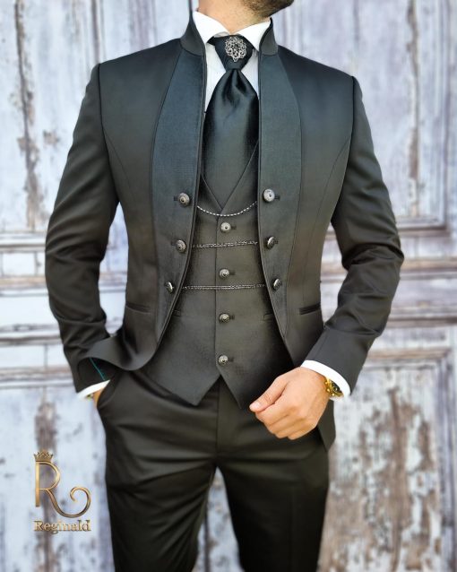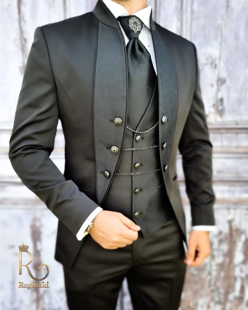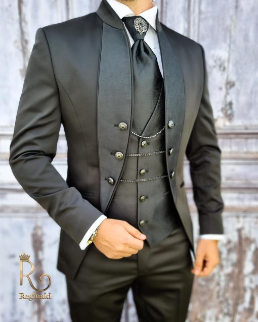 Costum ceremonie ginere/mire, Sacou-Vesta-Pantalon-Cravata, Colectia Nunta Reginald 2021
