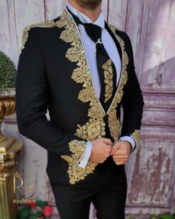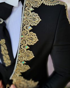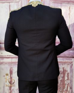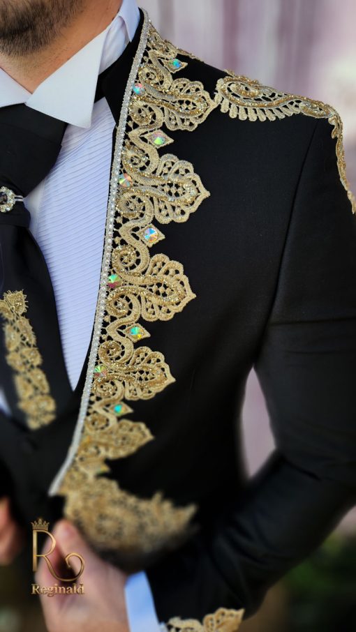 Culoarea: Negru cu broderii aurii aplicate pe sacou