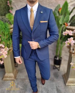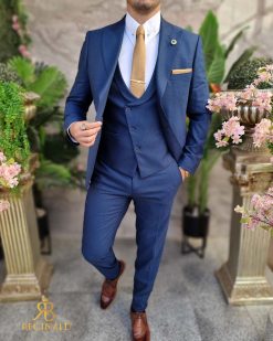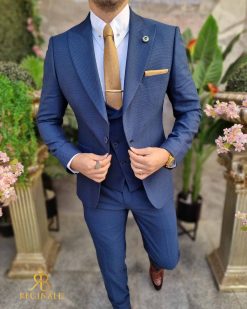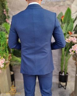 Costum elegant bleumarin texturat, set: 3 piese – C4437