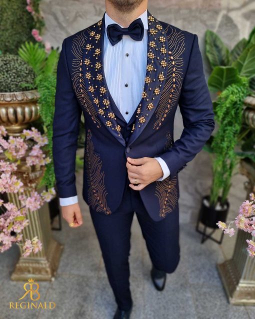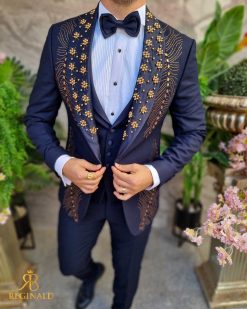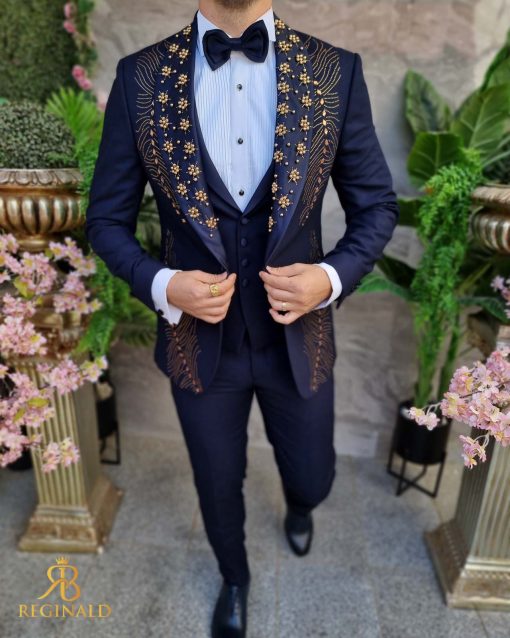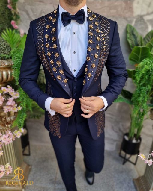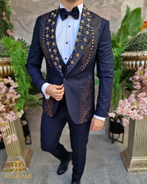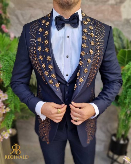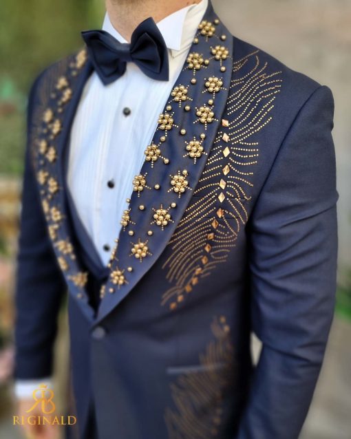 Sacoul este cu rever rotund, strasuri si pietre stralucitoare aurii aplicate