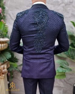 Sacoul este tip tunica cu pietre stralucitoare aplicate in partea superioara a sacoului