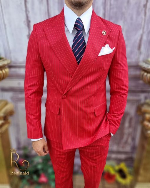 Costum elegant de bărbați, rosu in dungi, Sacou si Pantalon – C3744