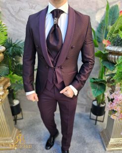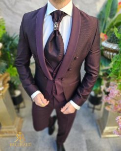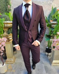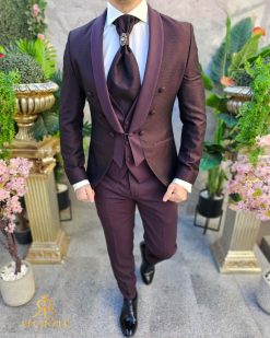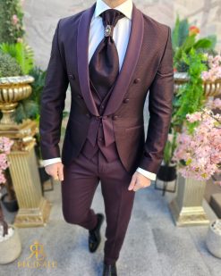 Costum grena NAS/MIRE, Sacou, Vesta, Pantalon, Cravata- C4554