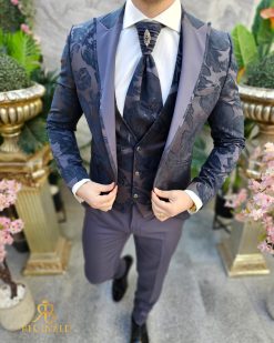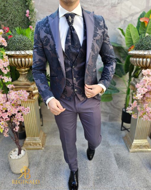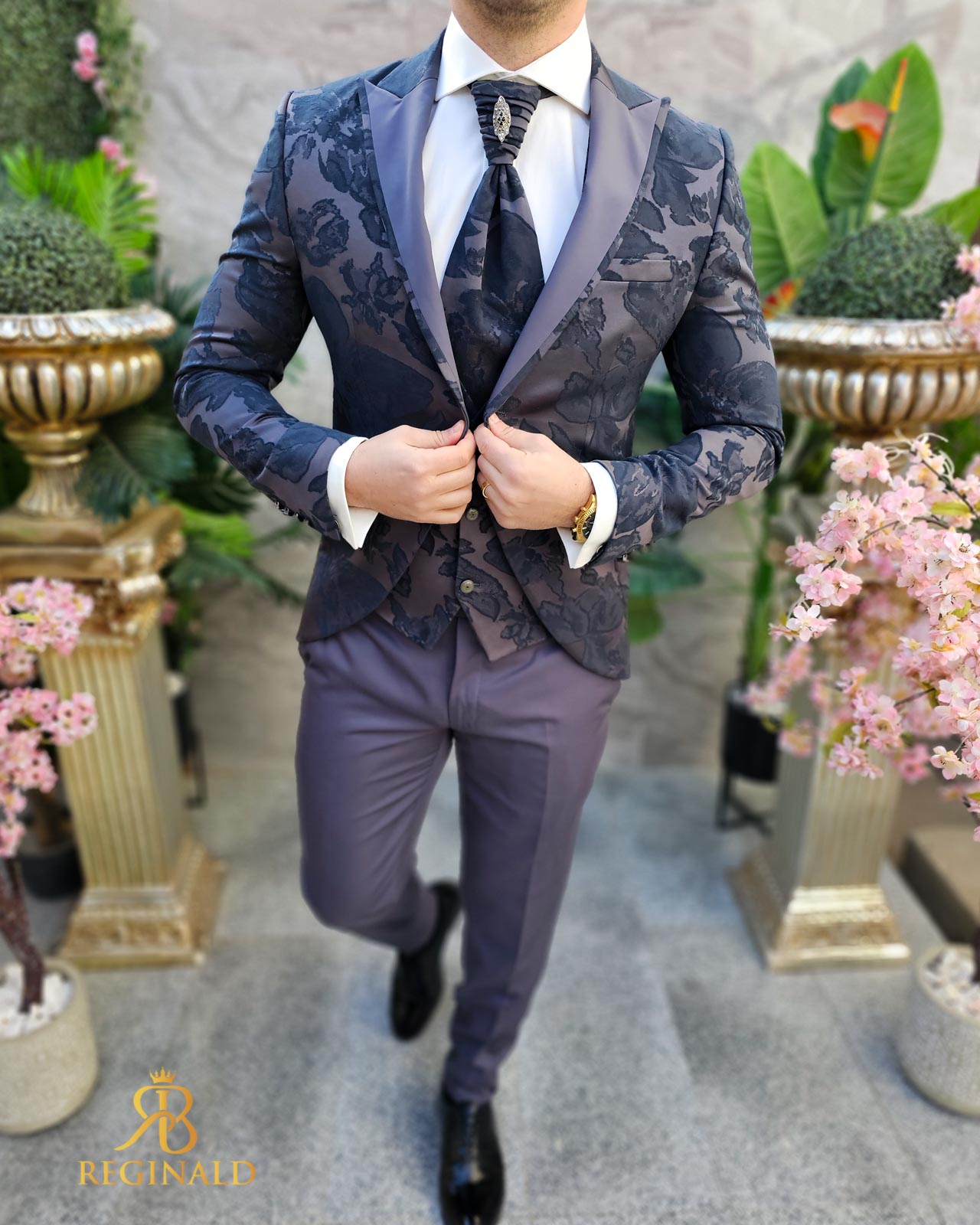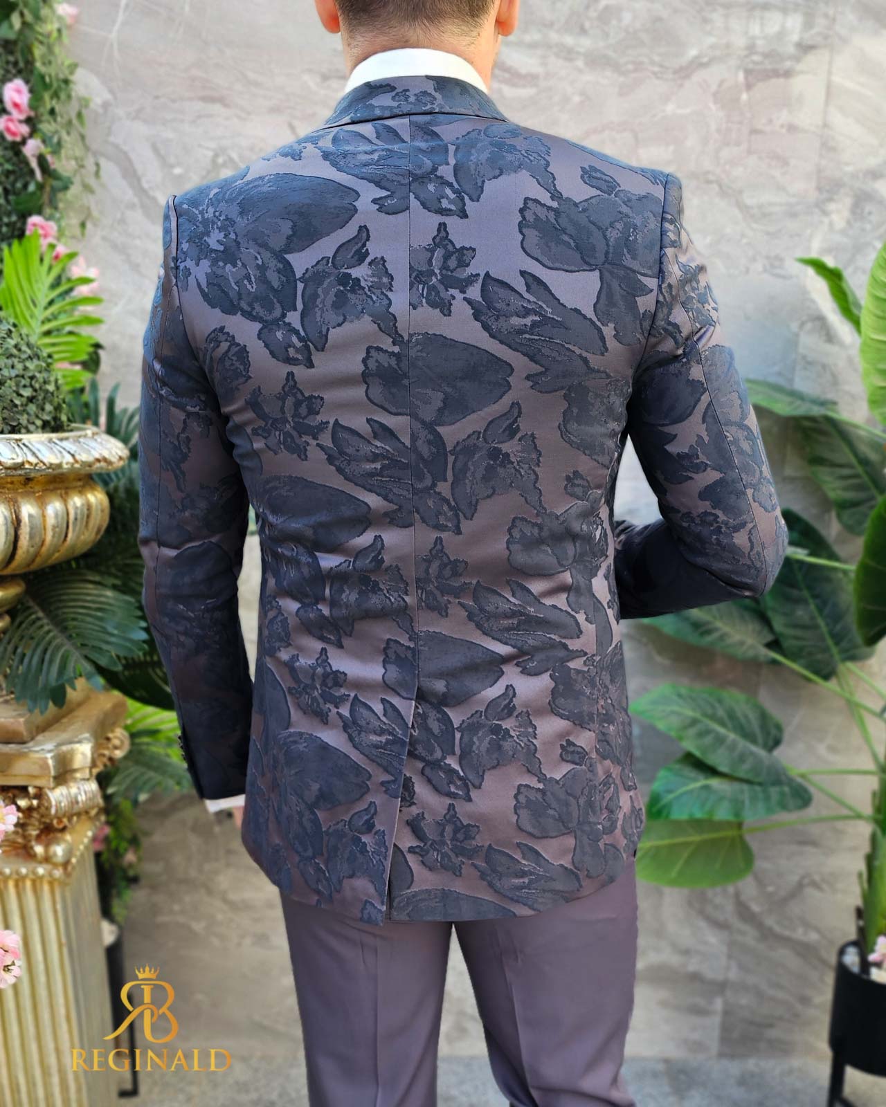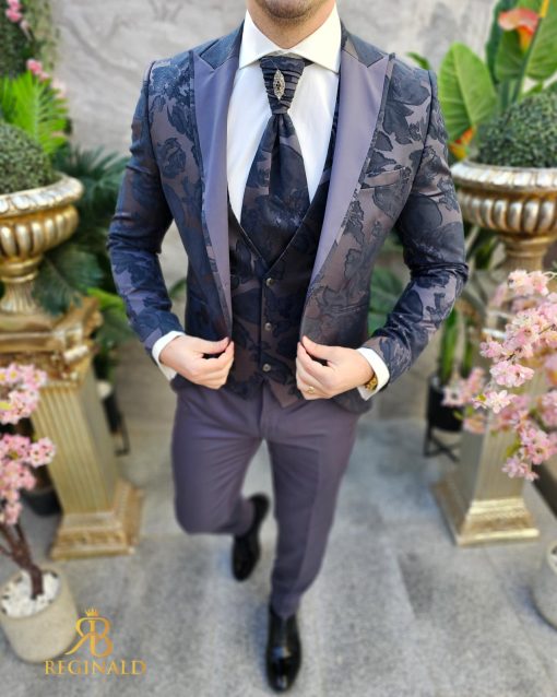 Set papion mov amplu cu butoni, brosa, batista - P91