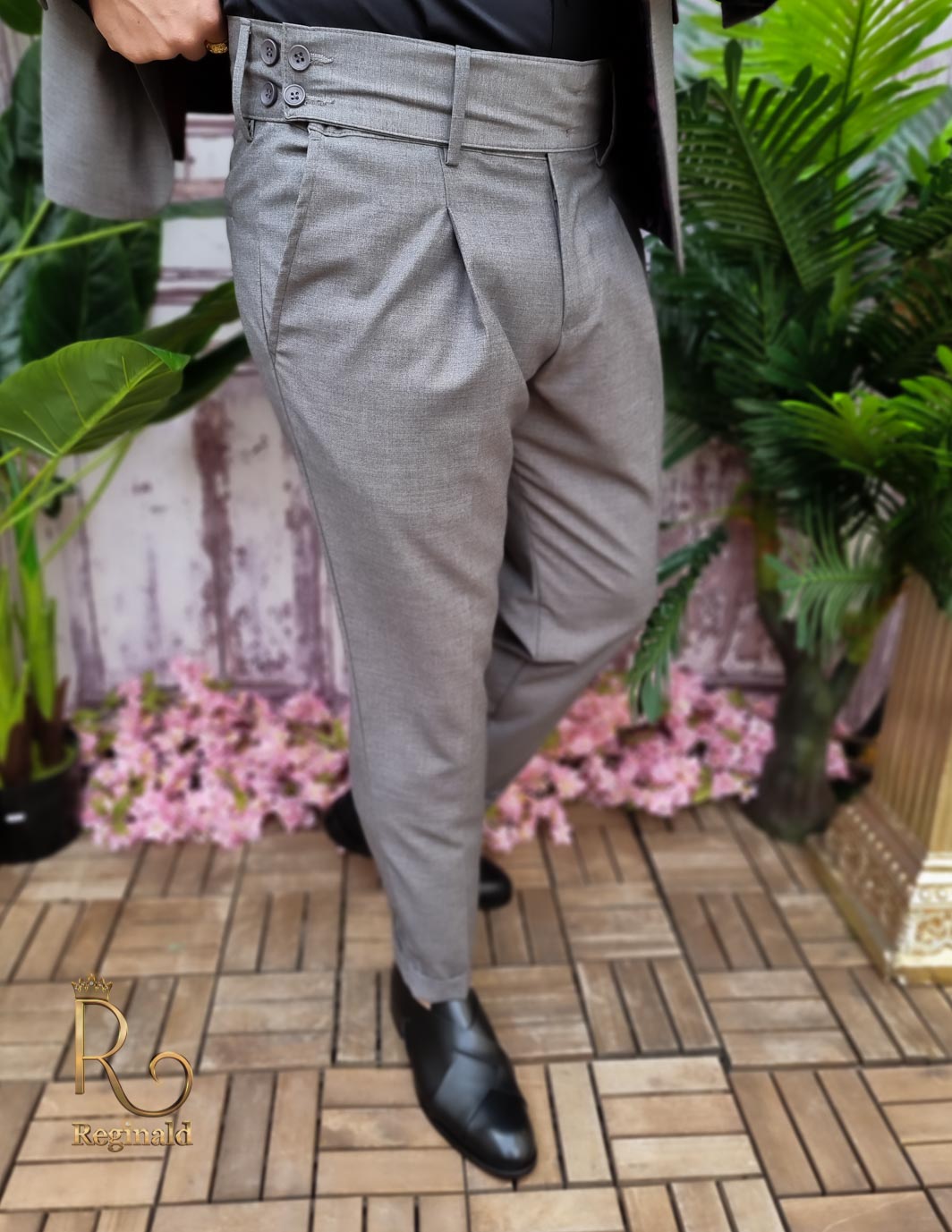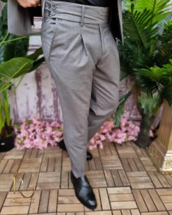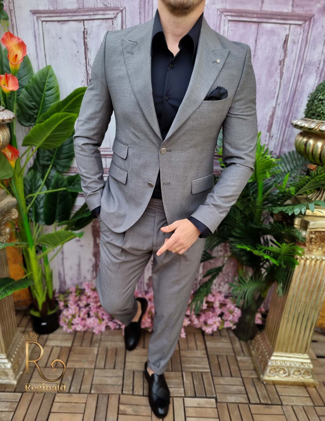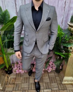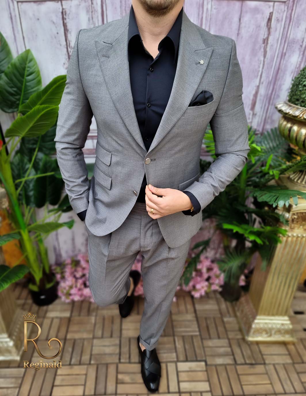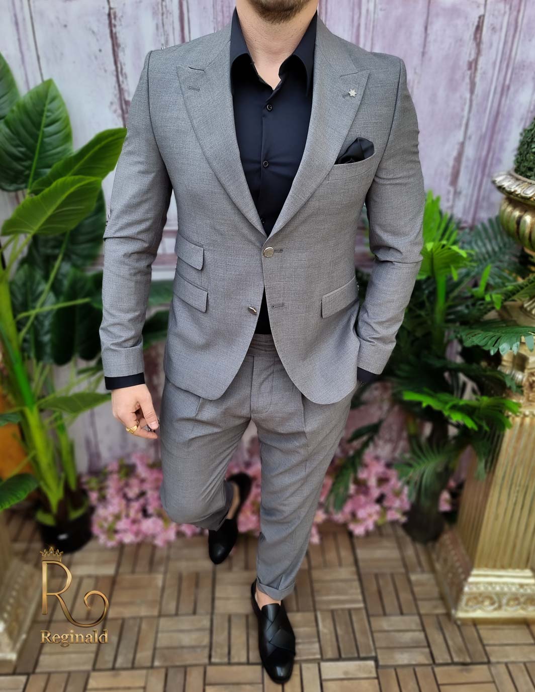 Costum gri Italian Style, Sacou si Pantalon cu pense – C4031