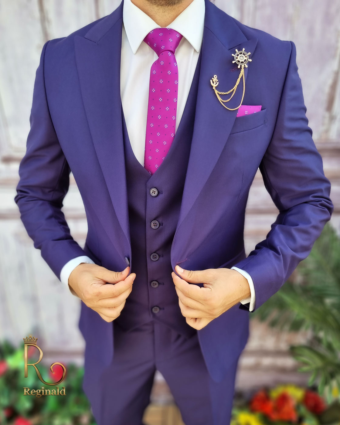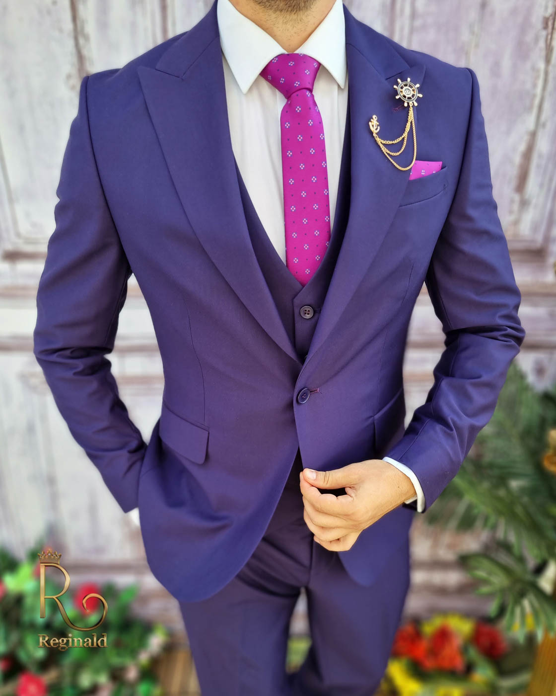 Costum Very Peri, Slim Fit, Sacou, Vesta si Pantalon din lâna 200`S – C3191