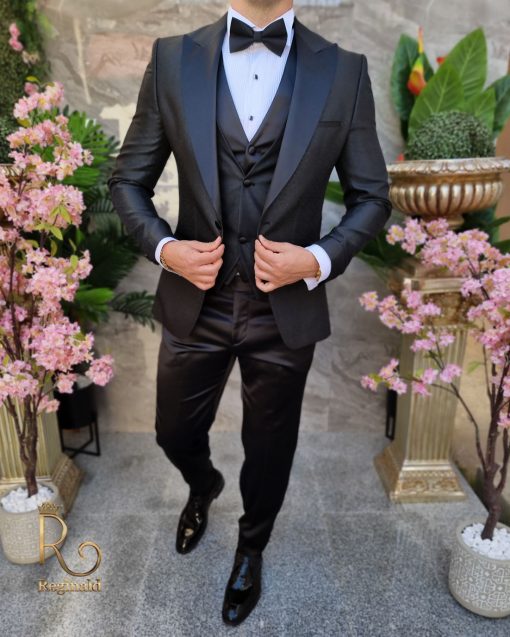 Costum negru de ceremonie Mire/Nas, Sacou,Vesta, Pantalon, Papion – C4122