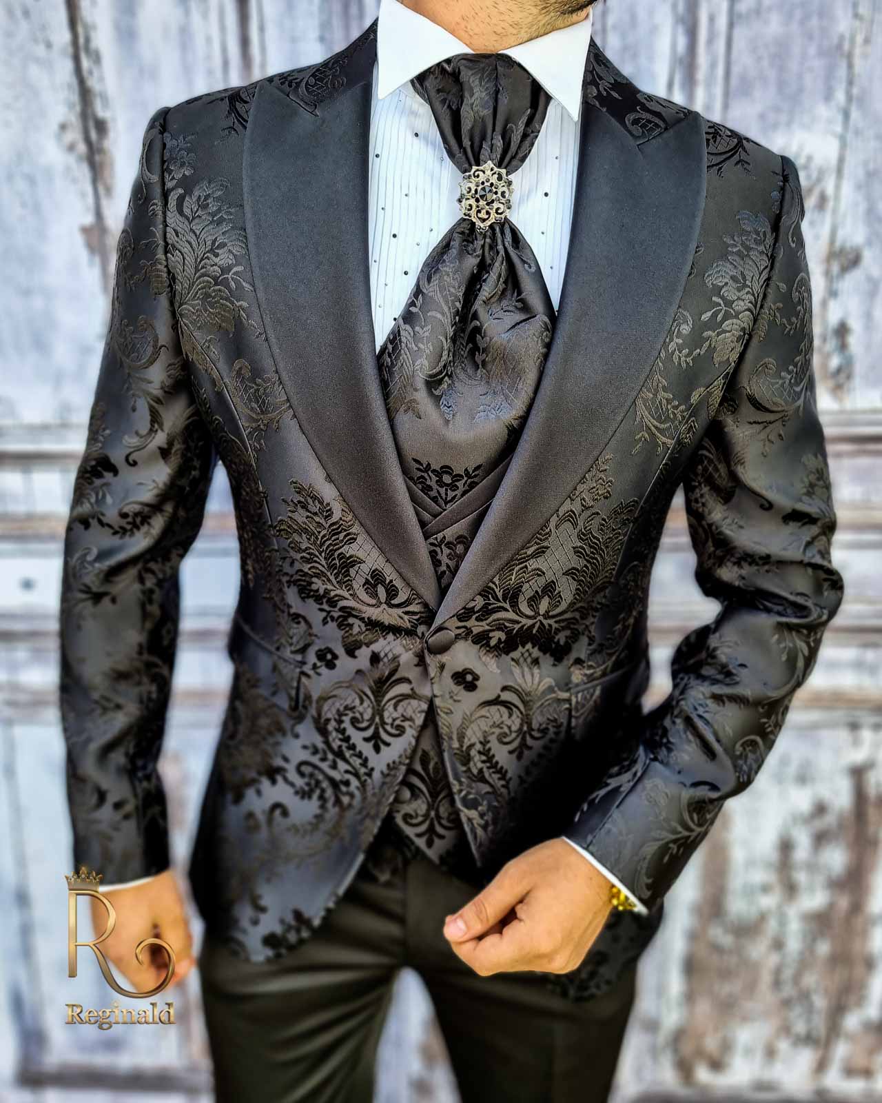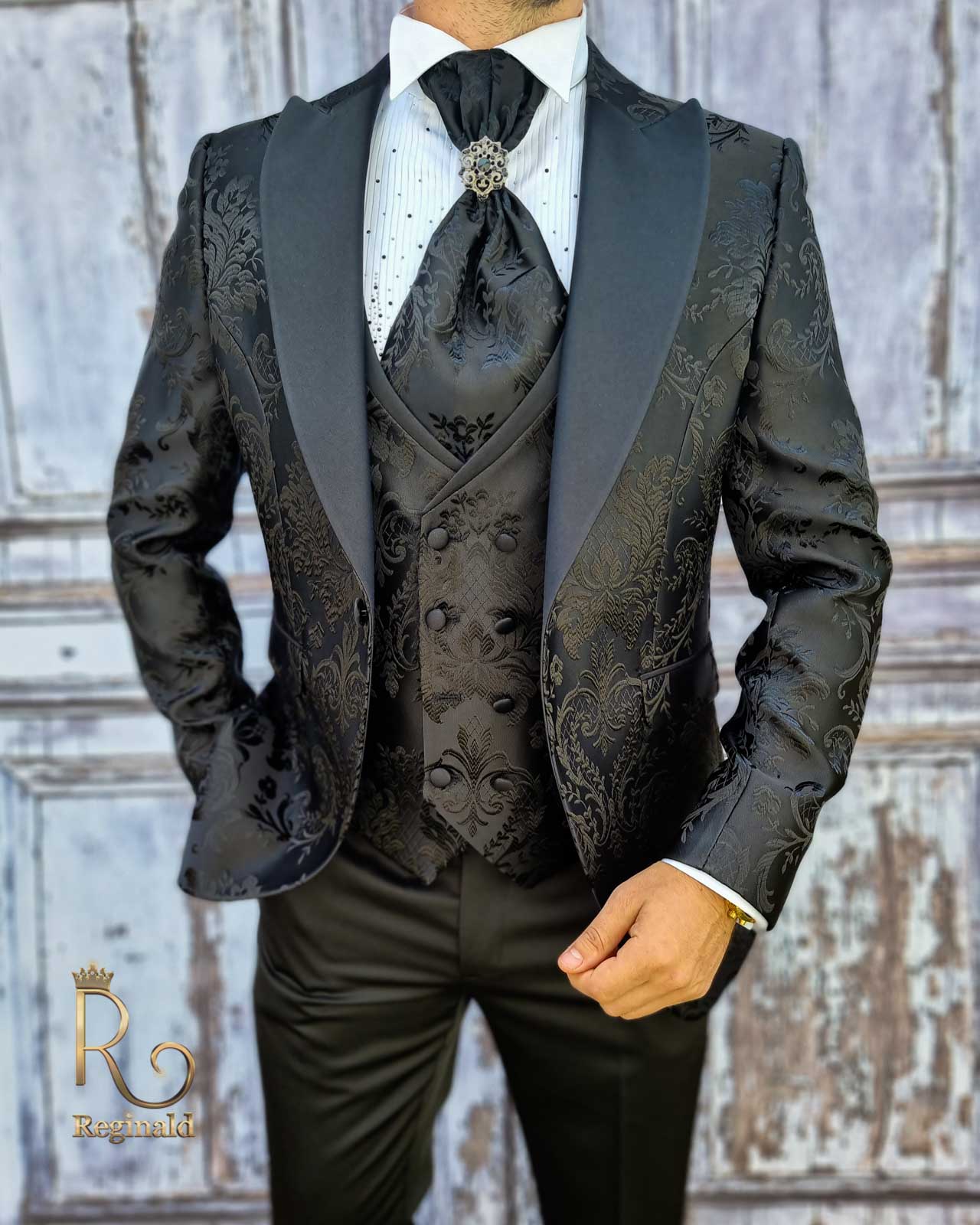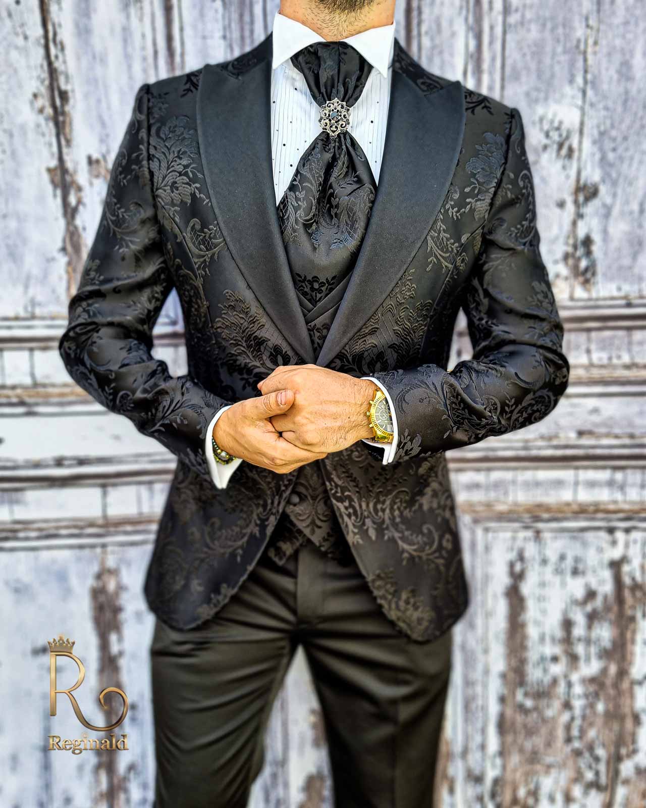Costum ceremonie negru, Sacou-Vesta-Pantalon-Cravata, Colectia Nunta Reginald
