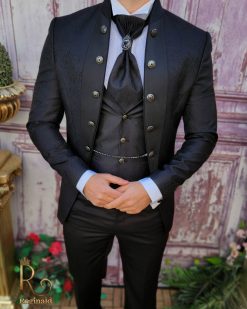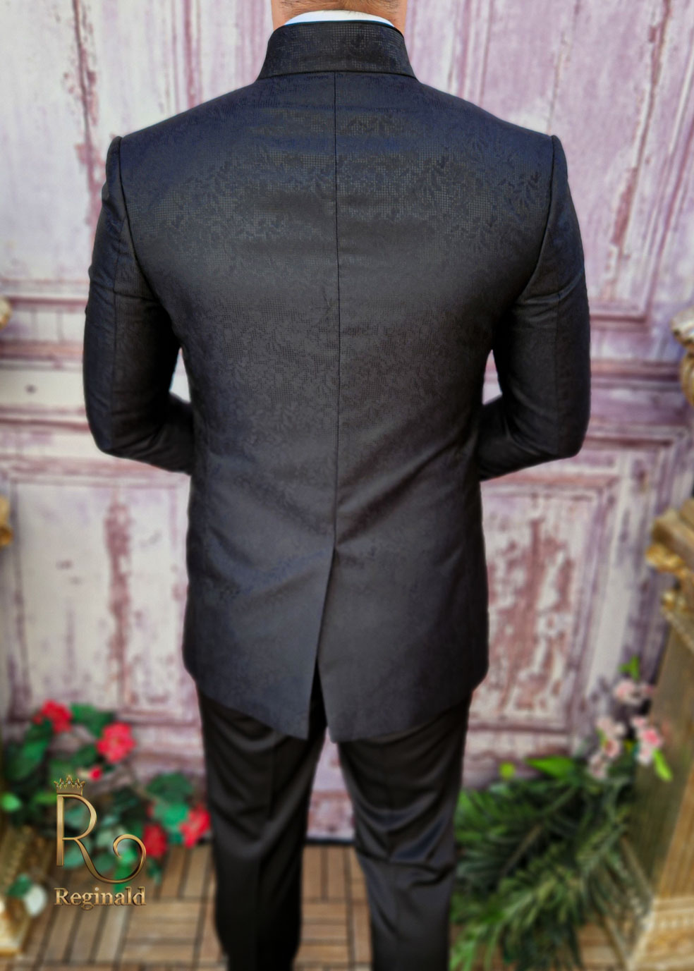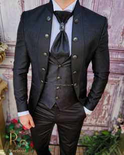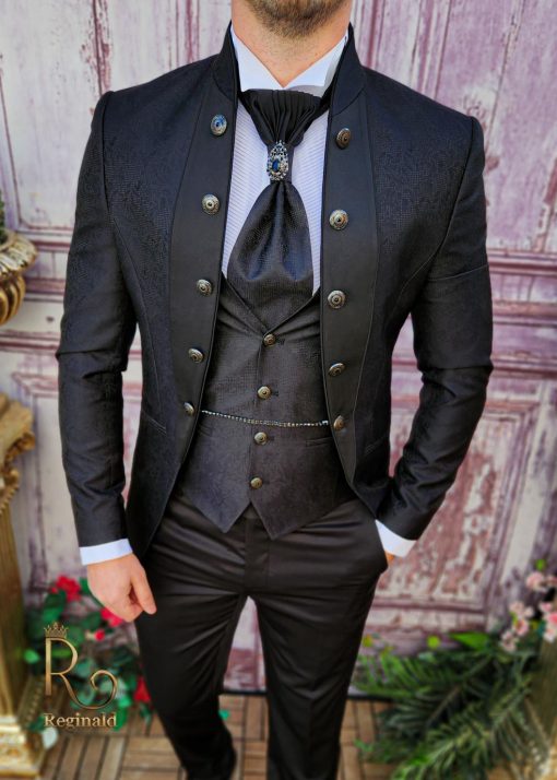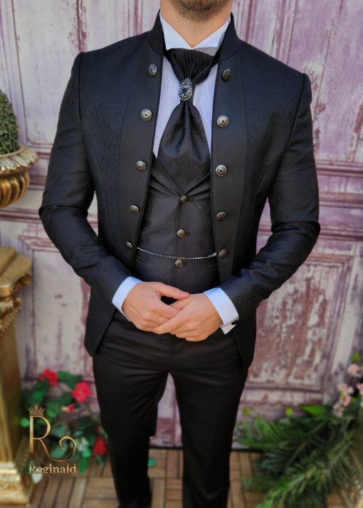 Sacoul este cu tunica, cu nasturi de-a lungul revereului