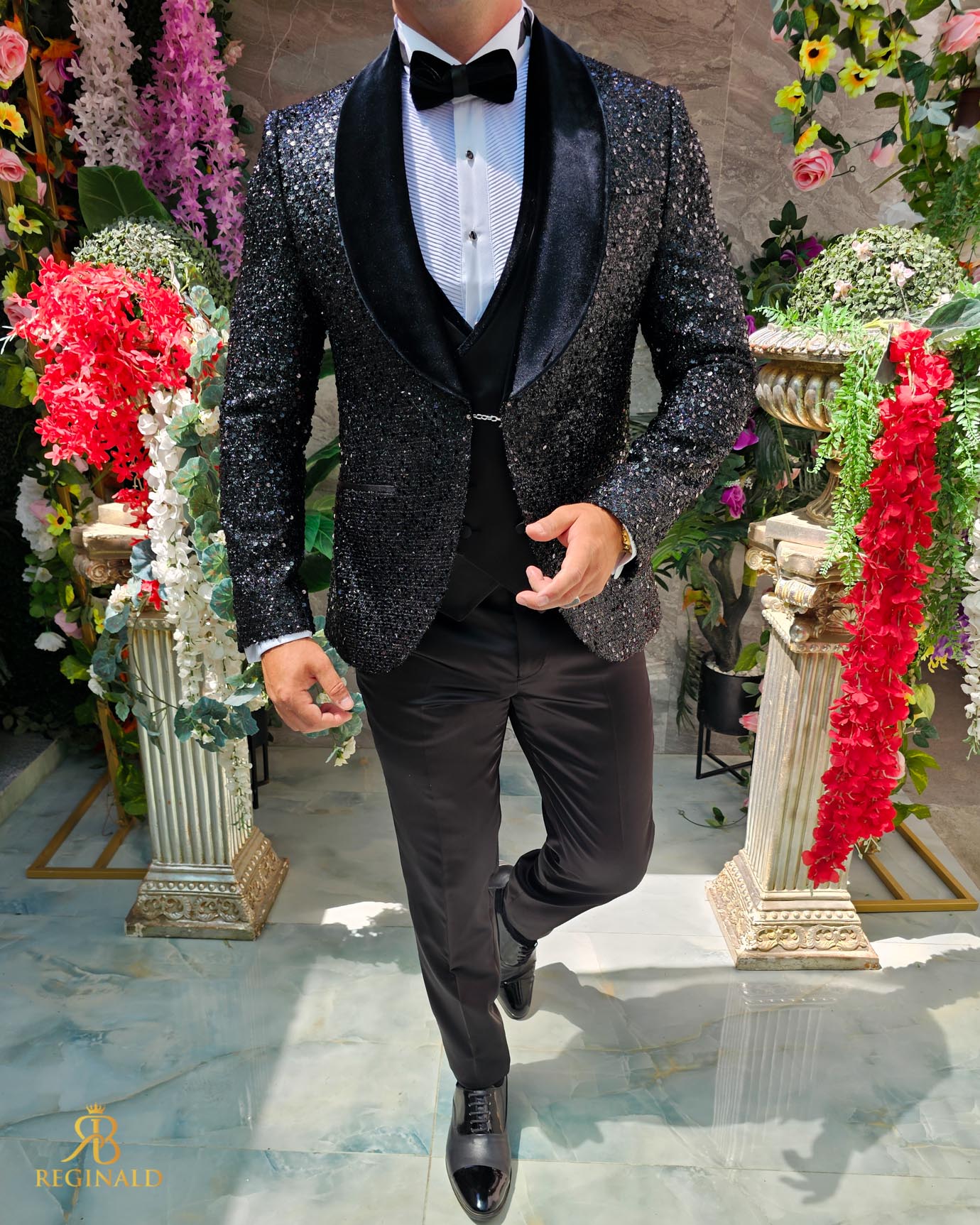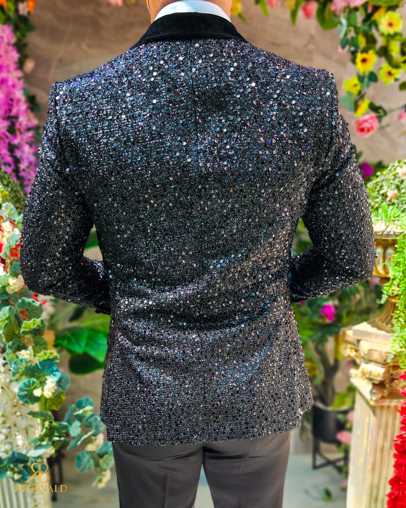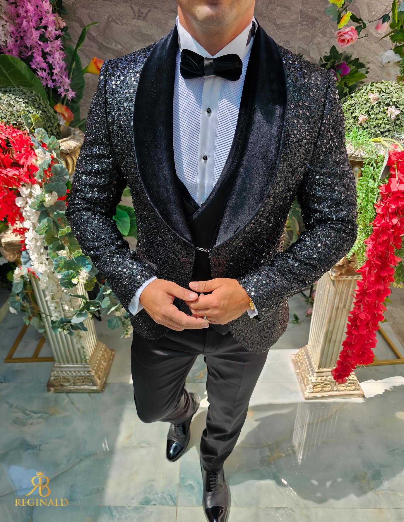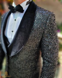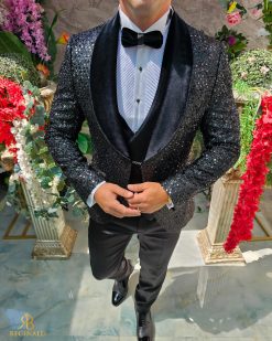 Costum negru elegant cu paiete si catifea MIRE/NAS, set: 4 piese – C5240