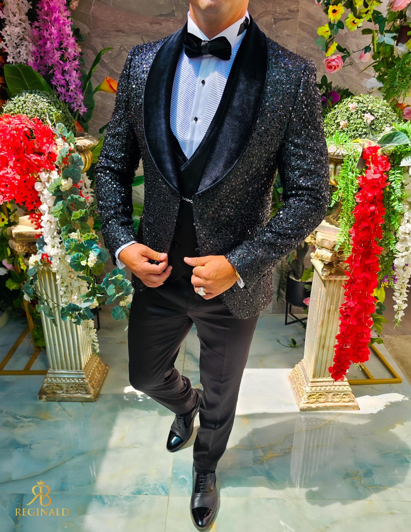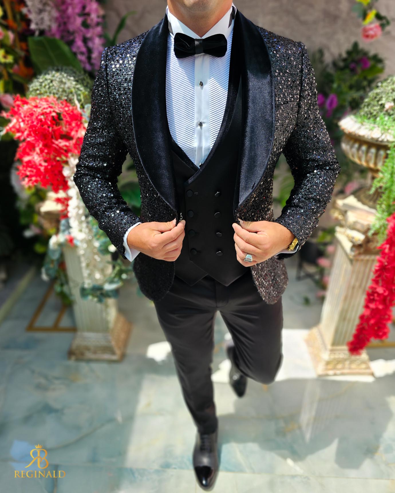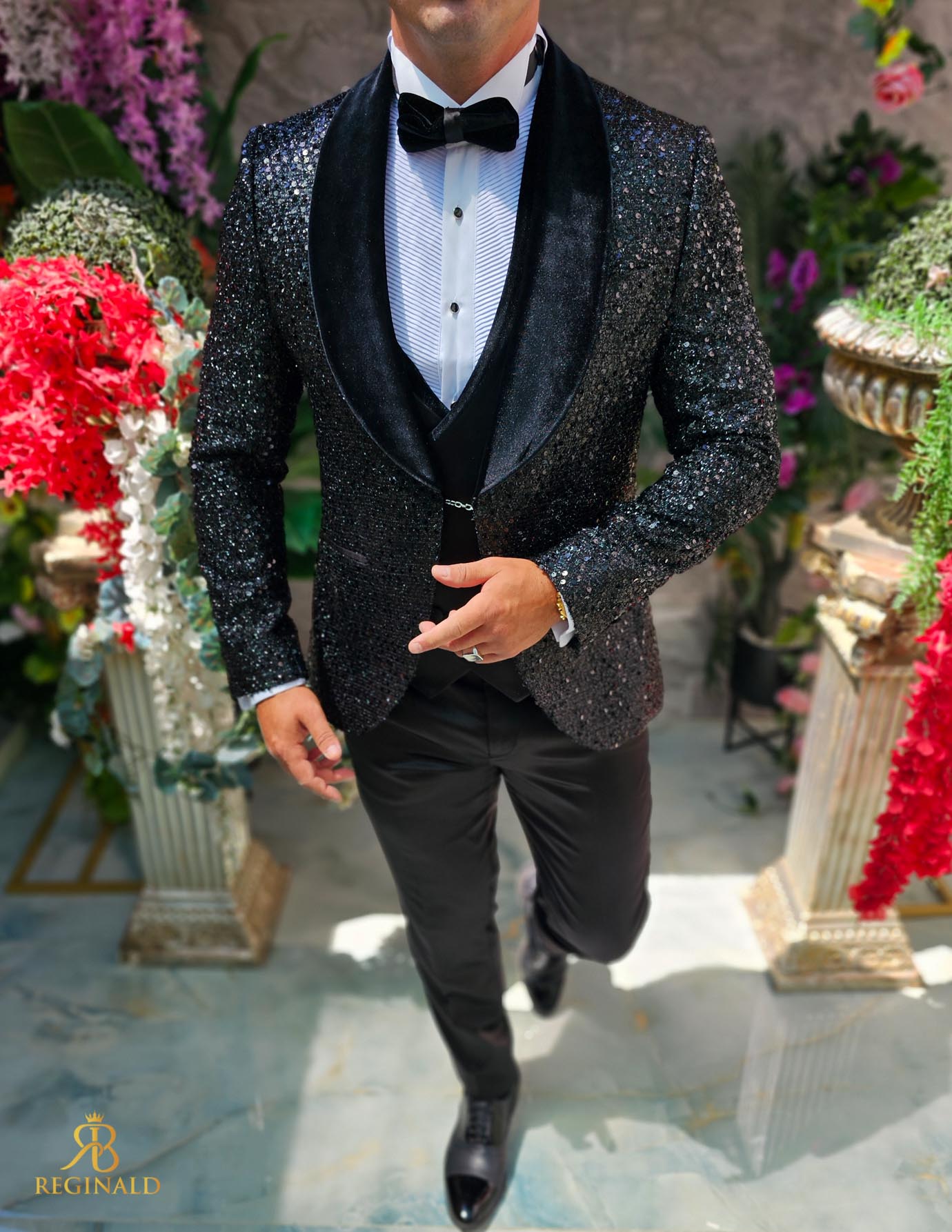 Costum negru elegant cu paiete si catifea MIRE/NAS, set: 4 piese – C5240