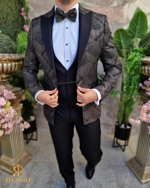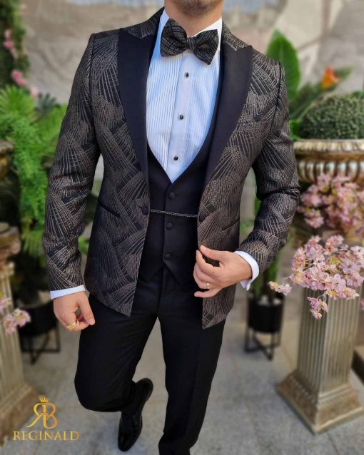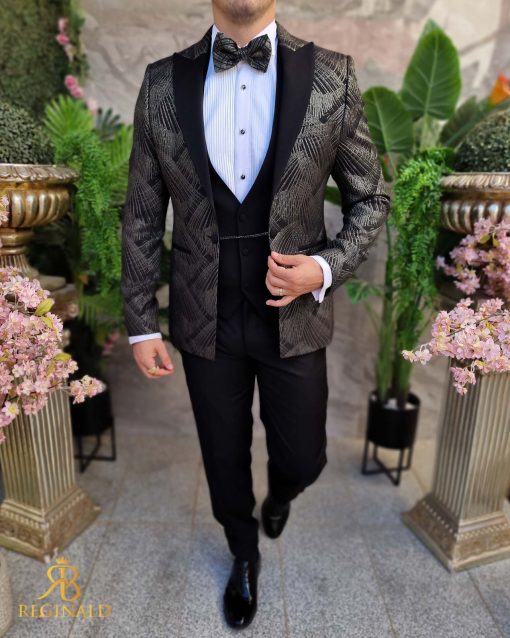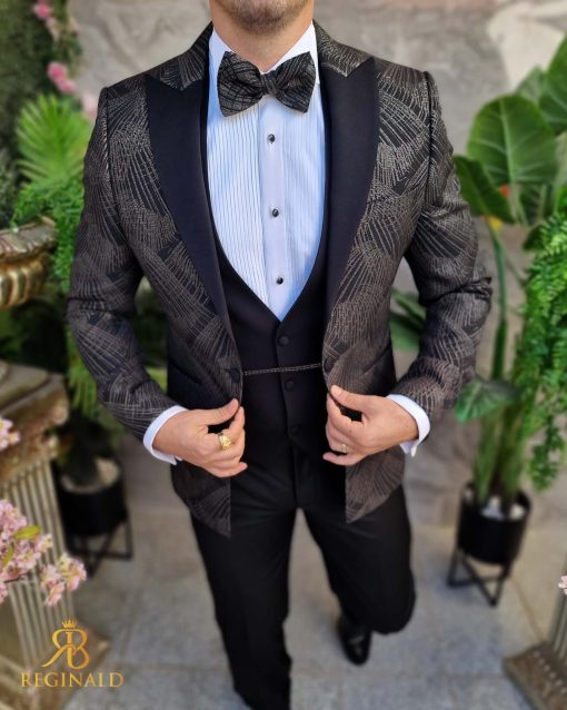 Sacoul este cu rever negru, model in relief pe sacou
