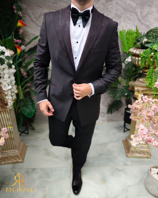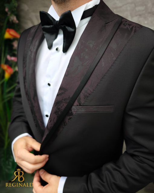 Set Cravata si batista, Bordeaux cu model - CV1060