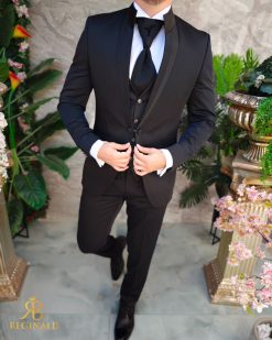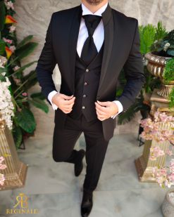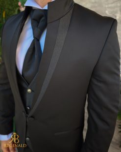 Costum negru NAS/MIRE, Sacou, Pantalon, Vesta, Cravata- C4972