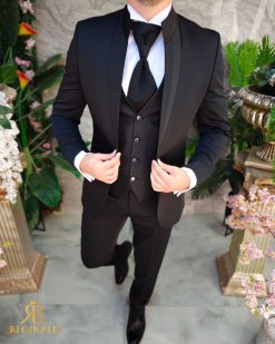 Costum negru NAS/MIRE, Sacou, Pantalon, Vesta, Cravata- C4972