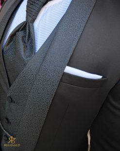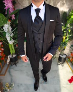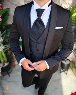 Costum negru NAS/MIRE, Sacou, Pantalon, Vesta, Cravata- C5267