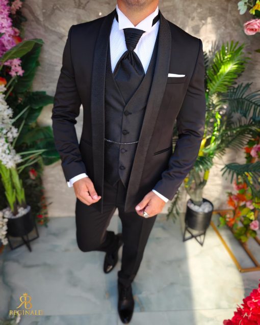 Costum negru NAS/MIRE, Sacou, Pantalon, Vesta, Cravata- C5267