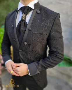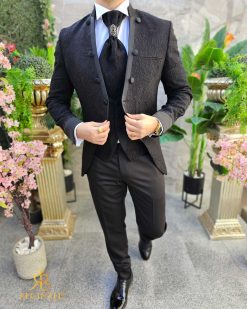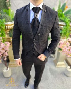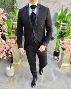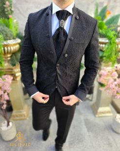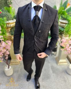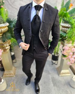 Costum negru NAS/MIRE, Sacou,Vesta, Pantalon, Cravata- C4541