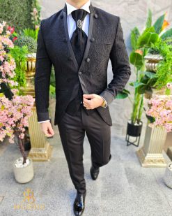 Costum negru NAS/MIRE, Sacou,Vesta, Pantalon, Cravata- C4541