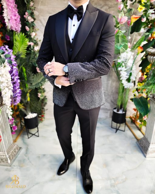 Culoare: model alb cu pietre stralucitoare aplicate pe sacou