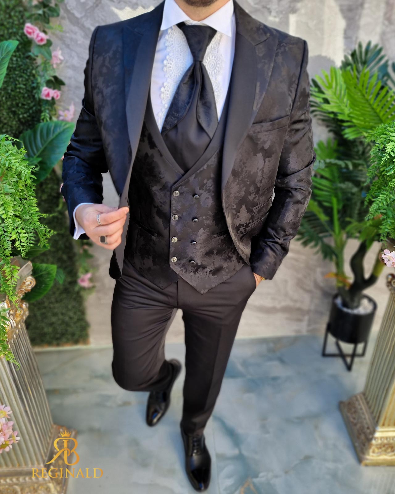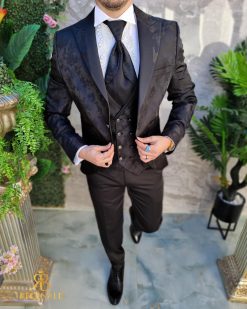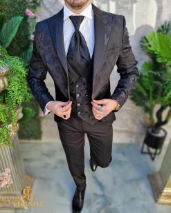 Set Cravata si batista, Turcoaz cu model - CV1074