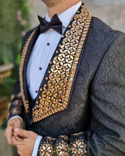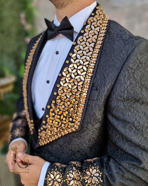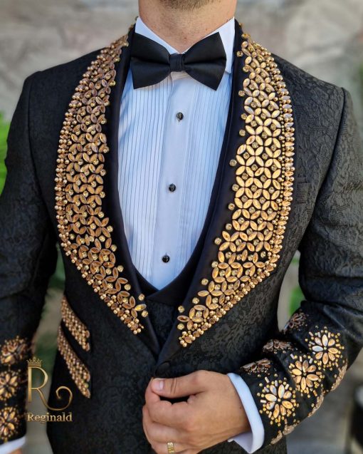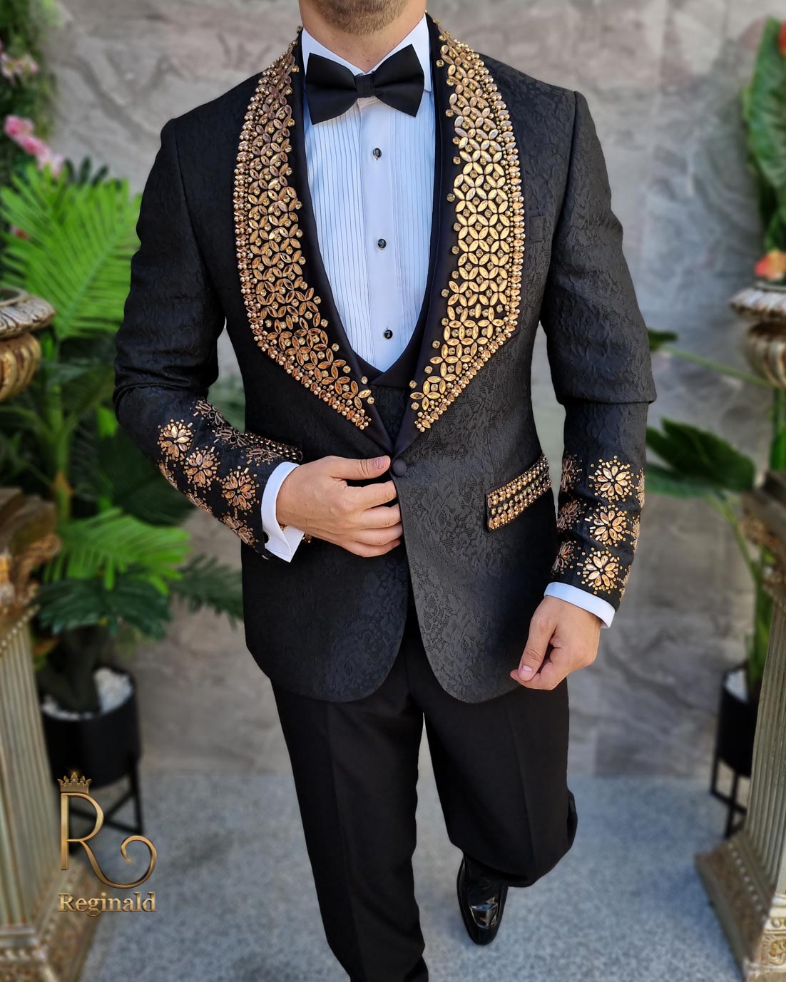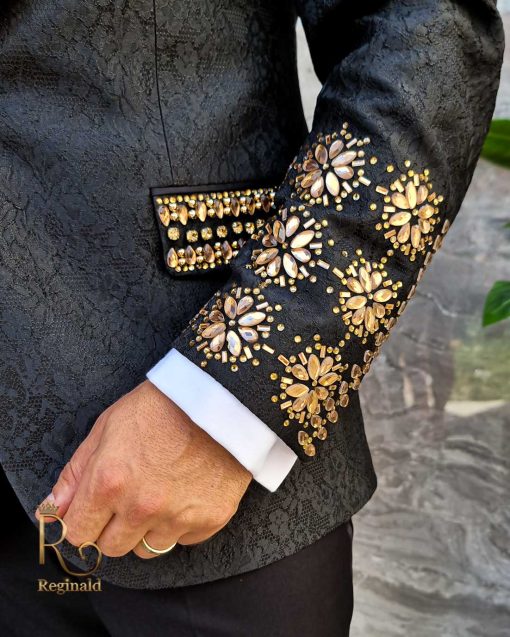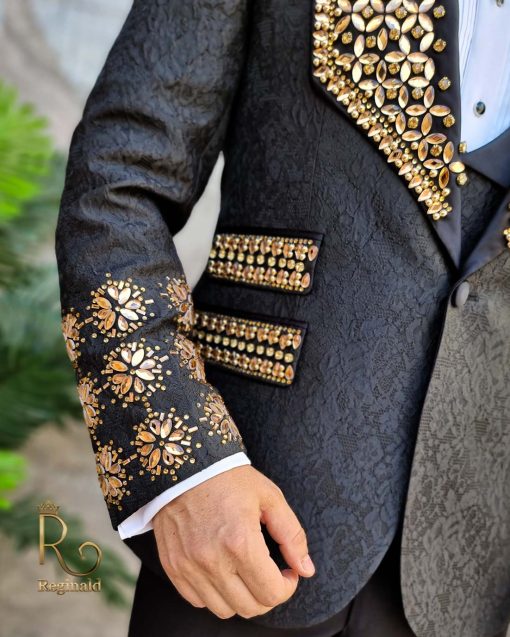 Costumul Reginald Ceremony PREMIUM CRYSTAL 2023 este o piesă vestimentară deosebită, perfectă pentru evenimente speciale și ceremonii. Acesta se remarcă prin strălucirea și eleganța sa, datorită pietrelor strălucitoare aplicate cu grijă pe reverul sacoului, pe mansetele și pe clapetele de la buzunare.