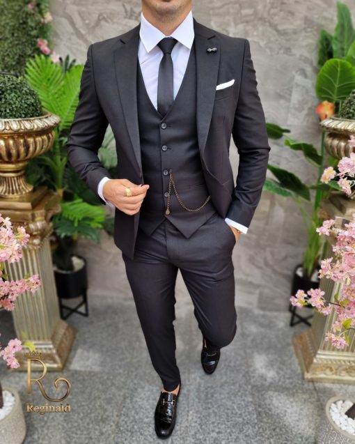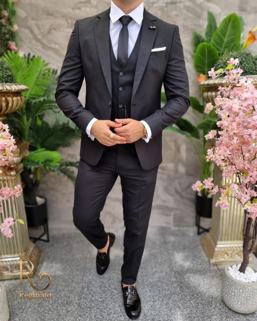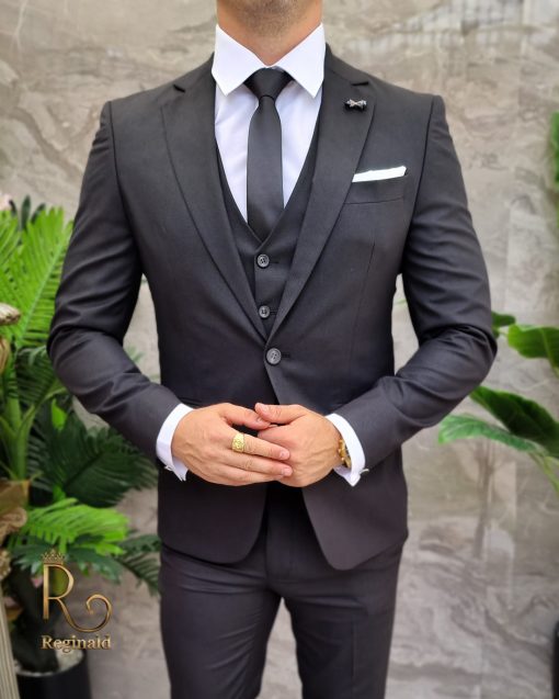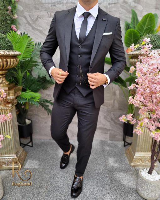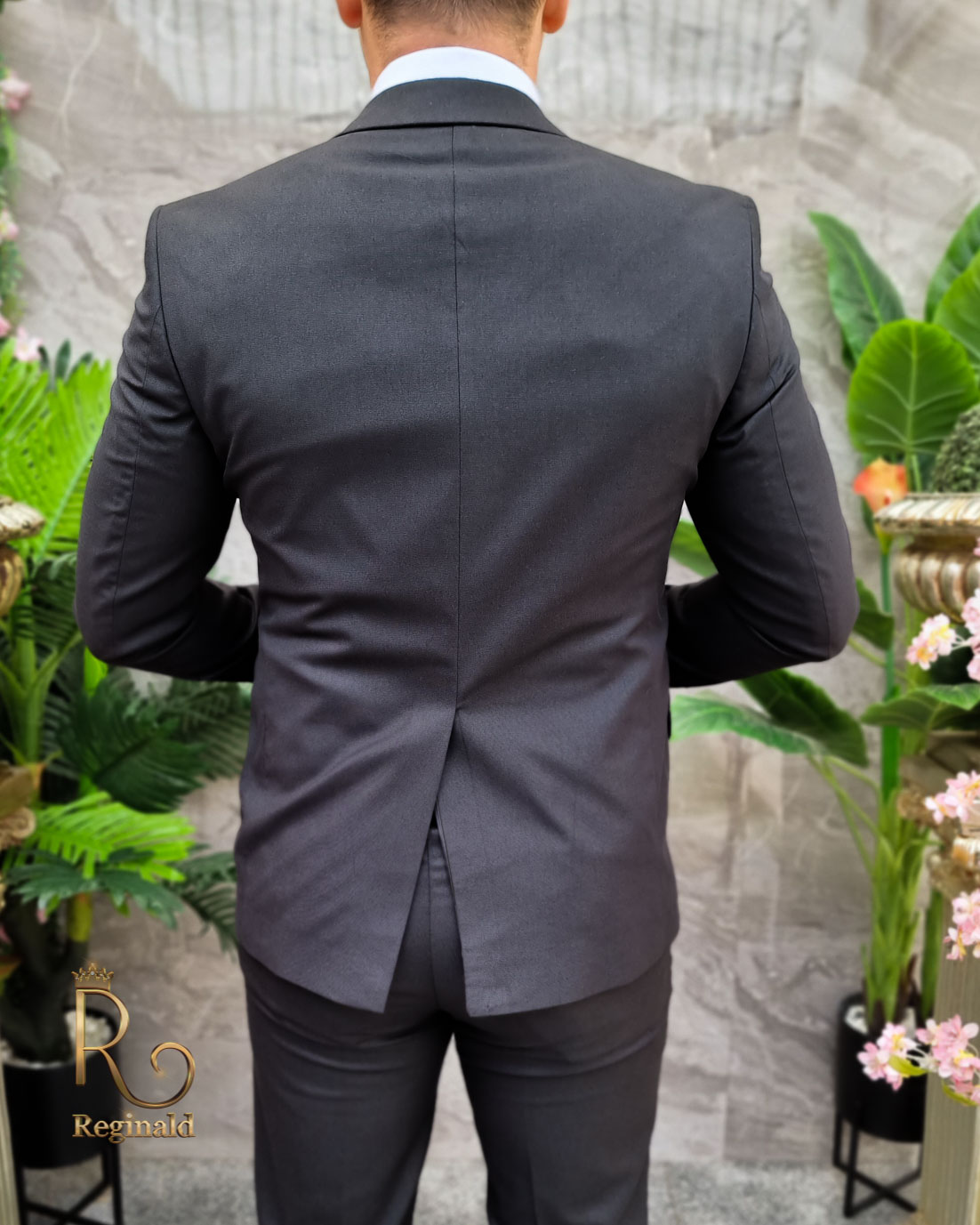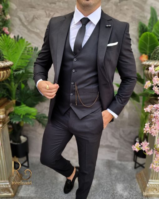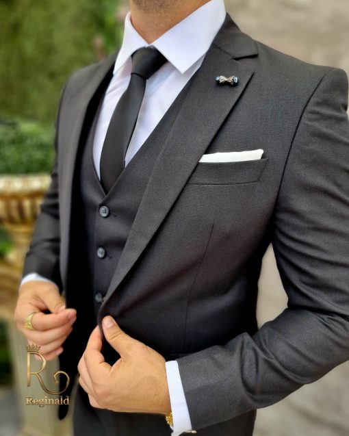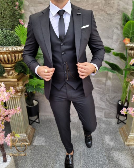 Costum Reginald negru texturat – Sacou, Vesta si Pantalon – C4204