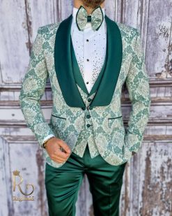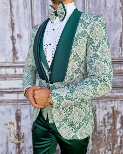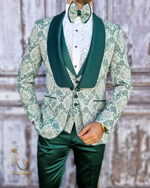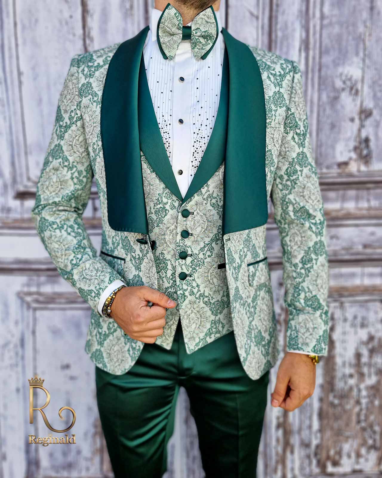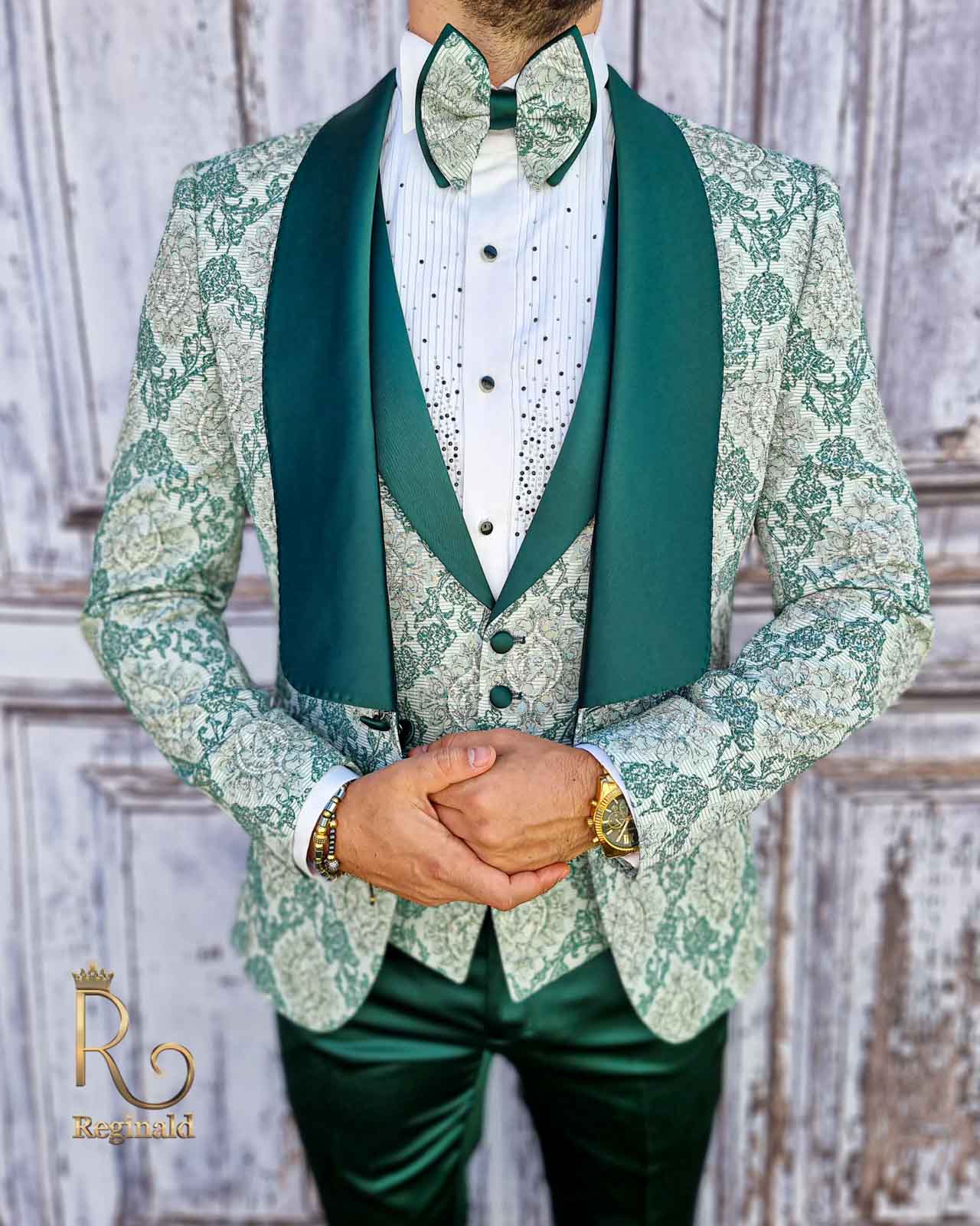 Costum ceremonie verde, Sacou-Vesta-Pantalon-Papion, Colectia Reginald
