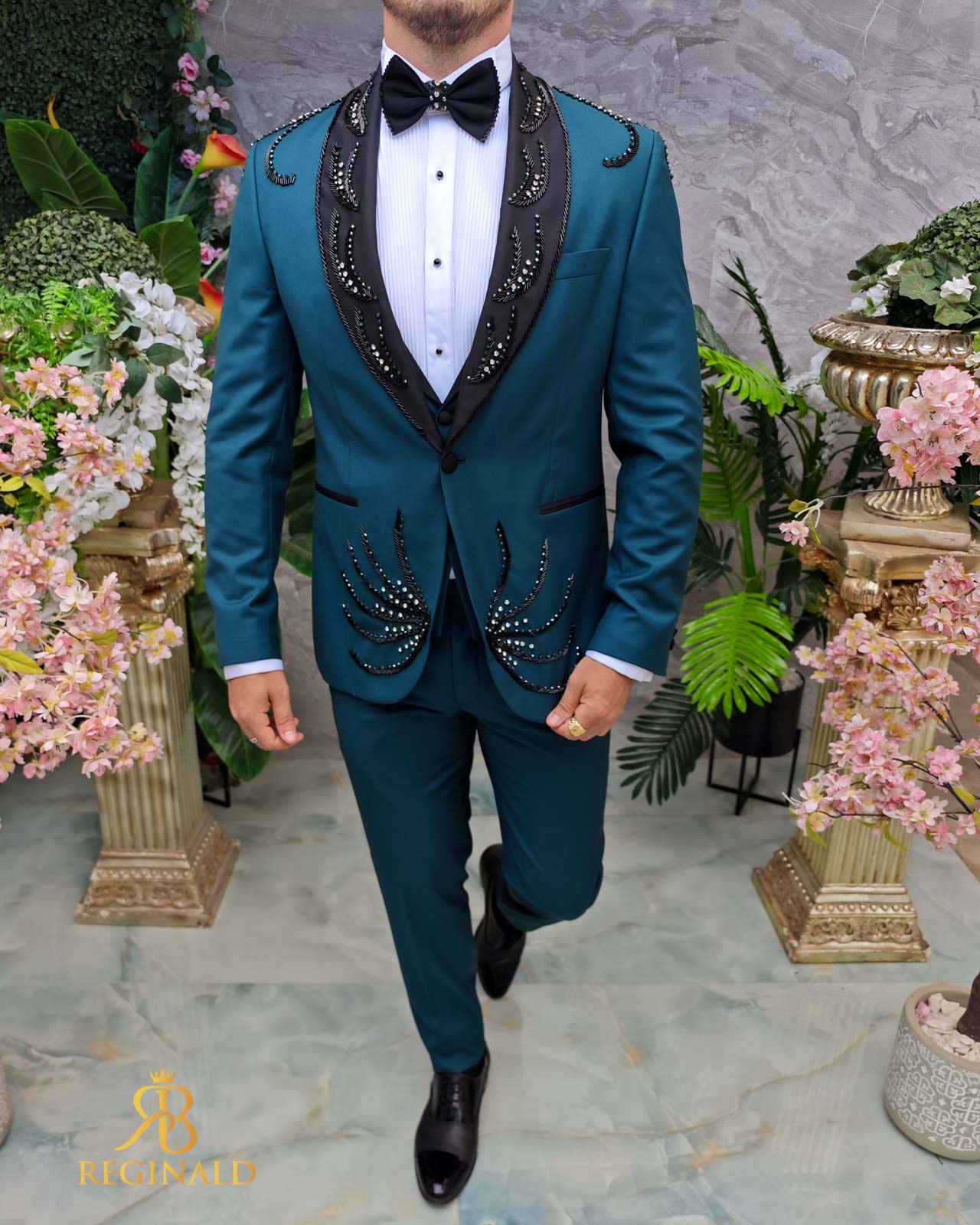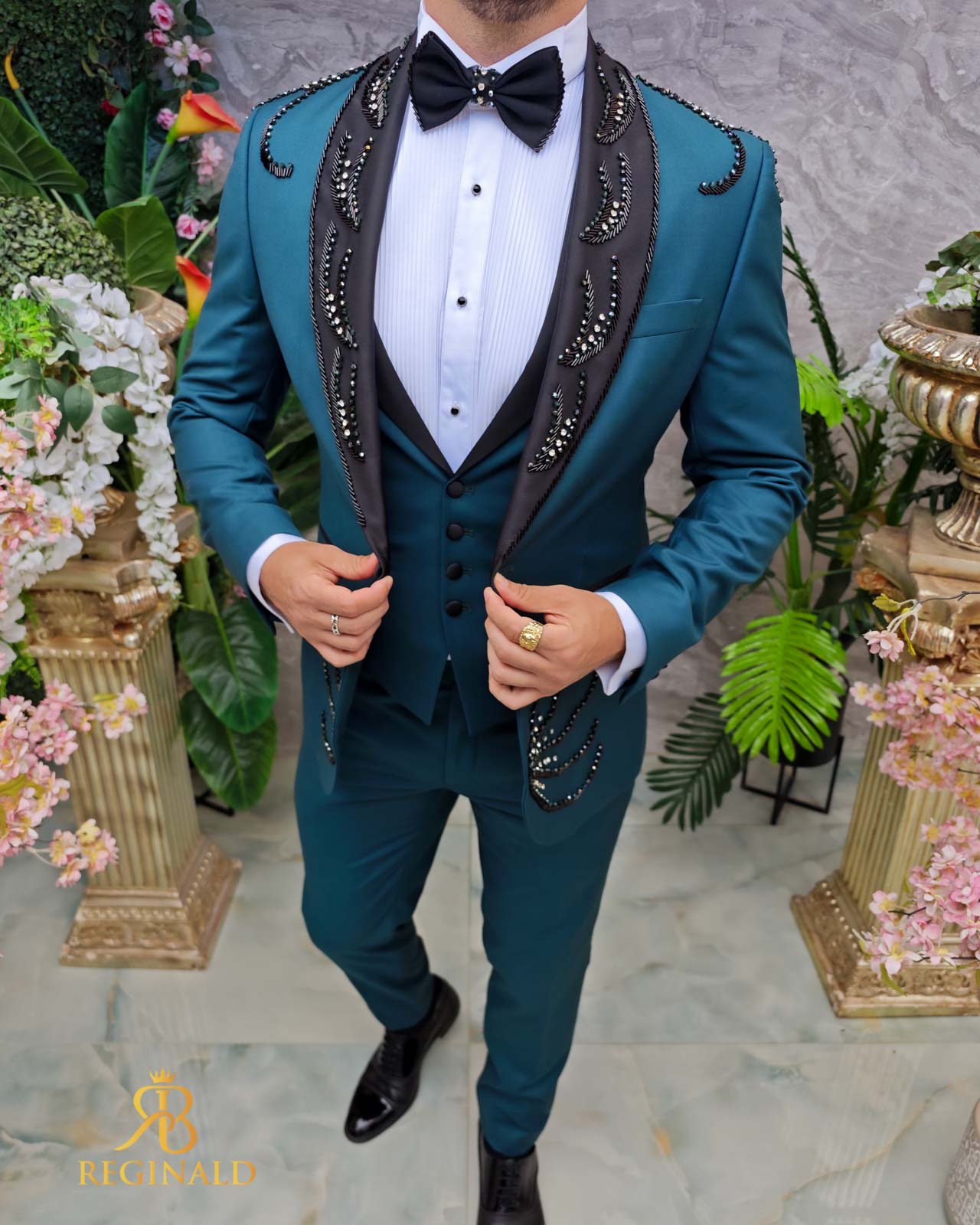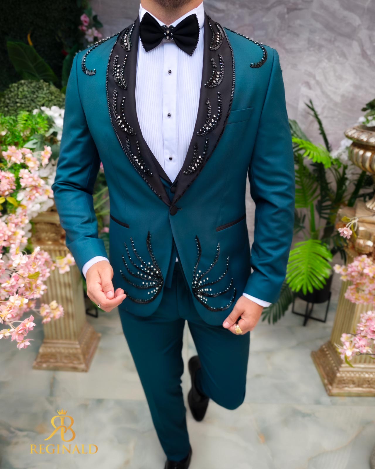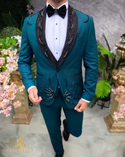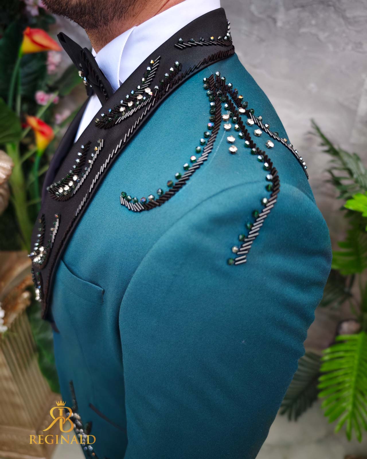 Sacou cu rever satinat, pietre stralucitoare aplicate