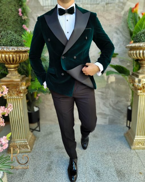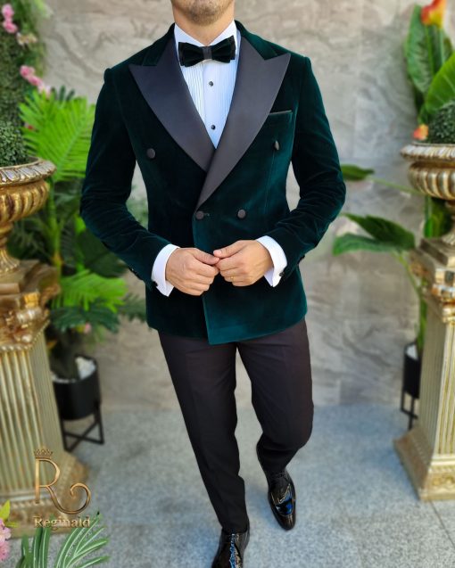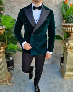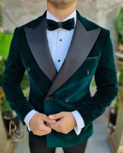 Costum verde inchis catifea NAS/MIRE, Sacou, Pantalon, Papion – C4143
