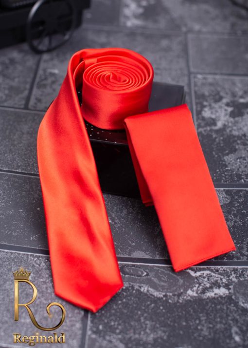 Cravata barbateasca rosie cu batista, subtire – CV350