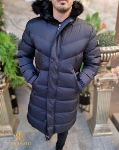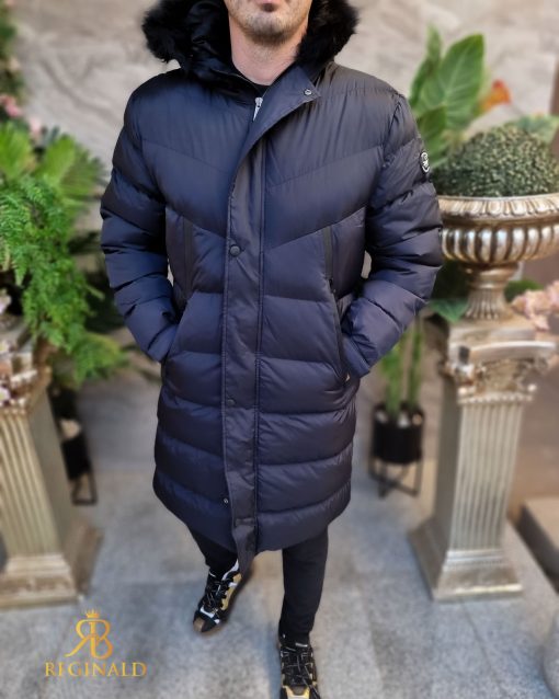 Geaca bleumarin lunga si groasa pentru barbati, cu gluga – GC809